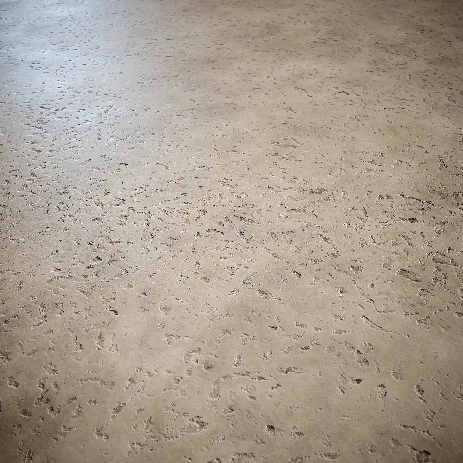 This plaster wall texture has a beige-brown color with rough, uneven surface details. The material shows natural weathering with small pits and organic texture variations. It works well for interior wall surfaces in architectural visualization.