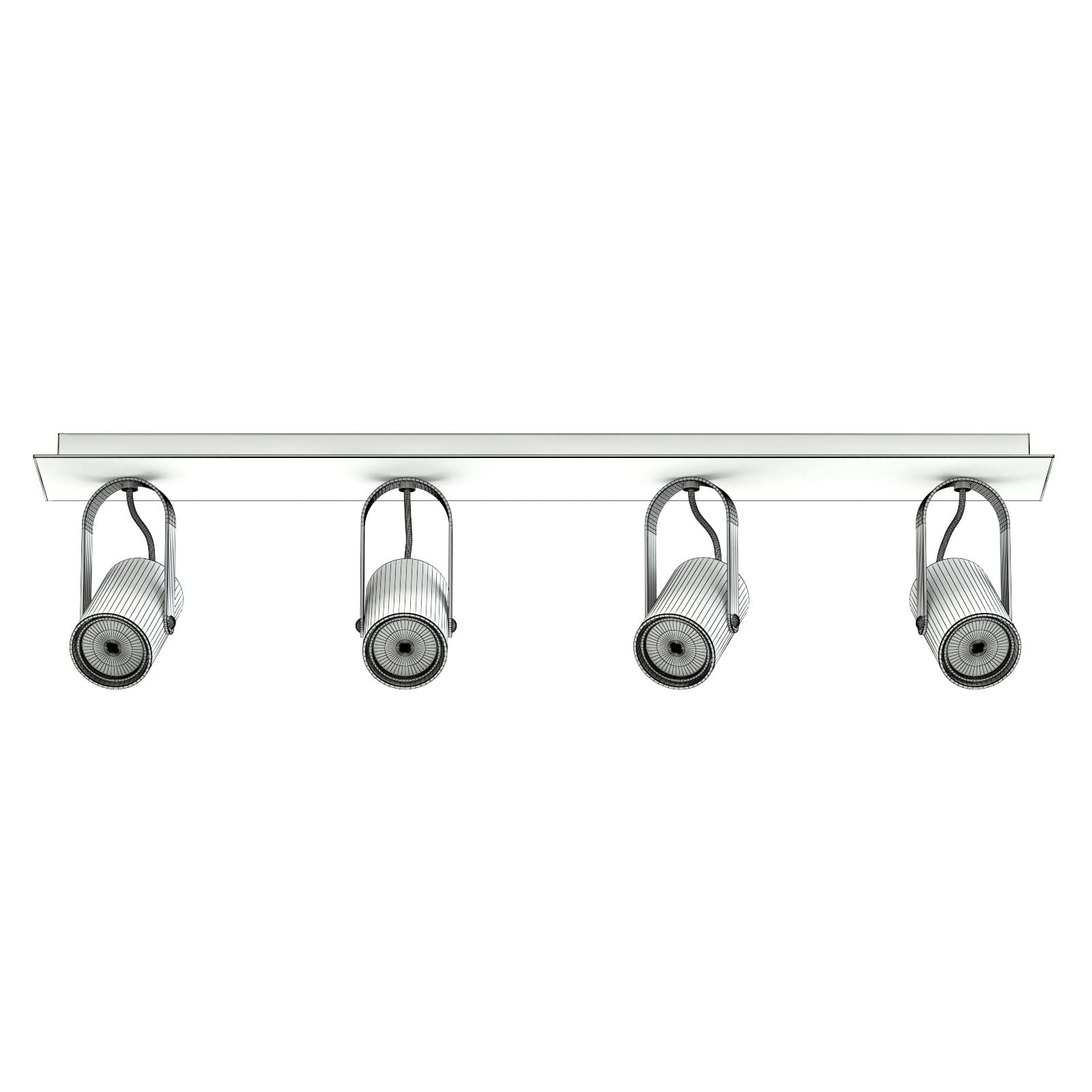 Black quadruple lights 3d model placed on a line. Compatible with 3ds max 2010 (V-Ray, Mental Ray, Corona) or higher, Cinema 4D R15 (V-Ray, Advanced Renderer), Unreal Engine, FBX and OBJ.