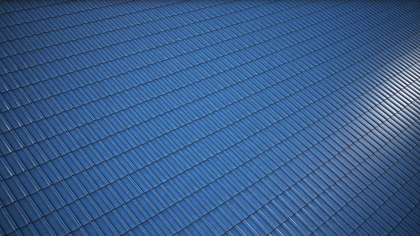 Seamless (tileable) Blue Metal Roof PBR Texture with seven maps: albedo/diffuse, reflection, glossiness, height/displacement, roughness, ambient occlusion and normal map.