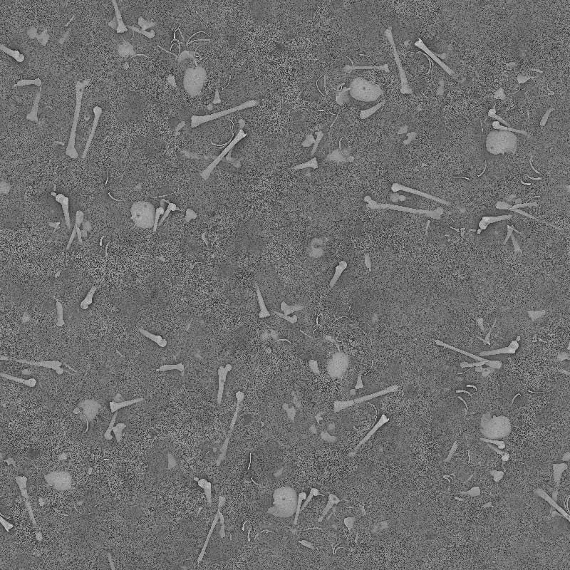 Seamless (tileable) Bones on Deser PBR Texture with eight maps: albedo/diffuse, reflection, glossiness, height/displacement, roughness, metalness, ambient occlusion and normal map. Resolution: 8192x8192px and 4096x4096px.