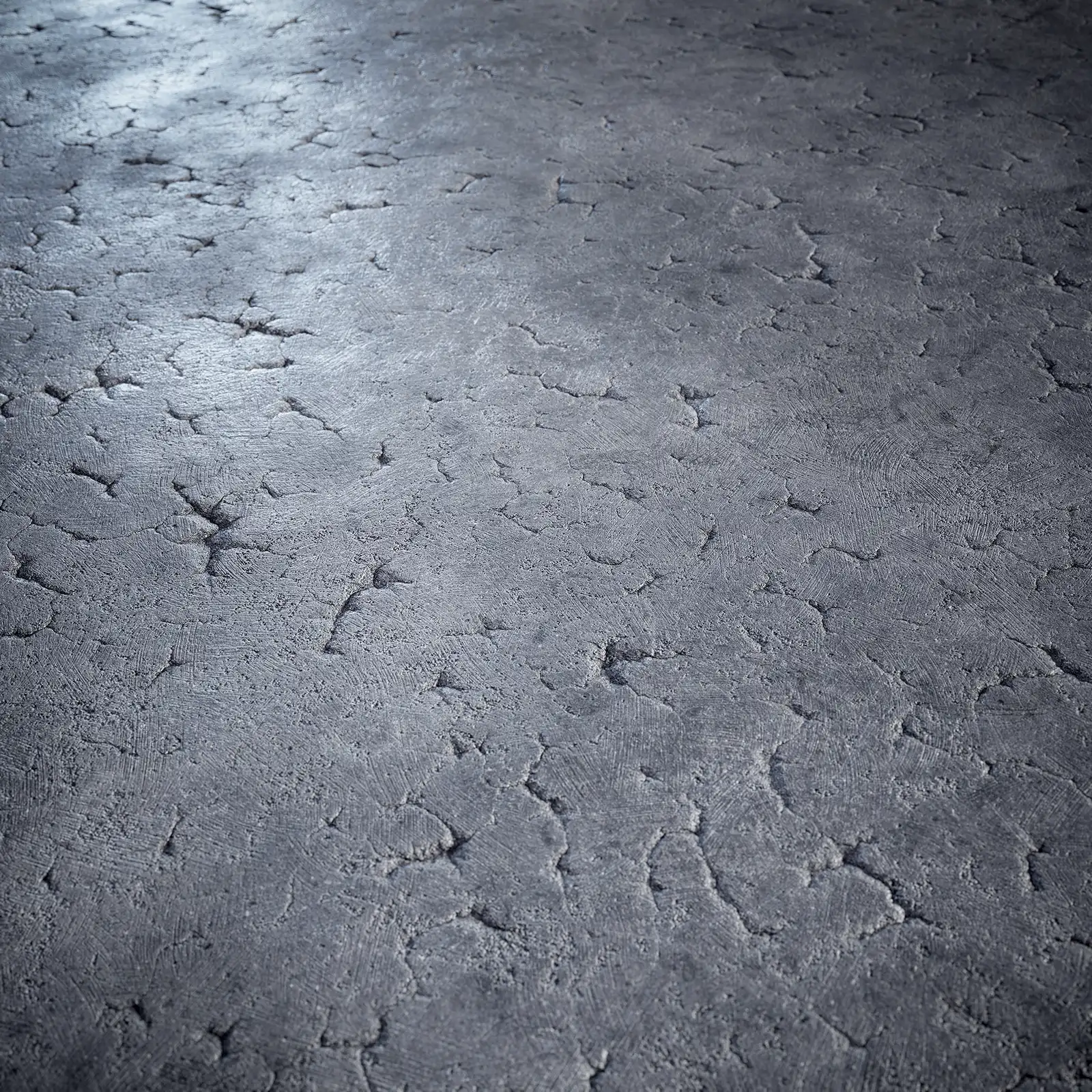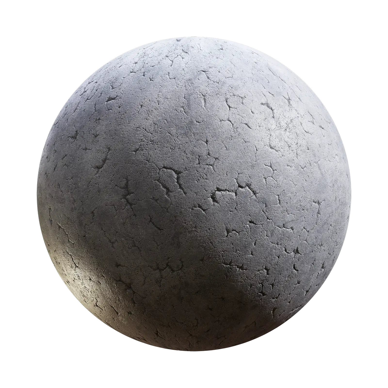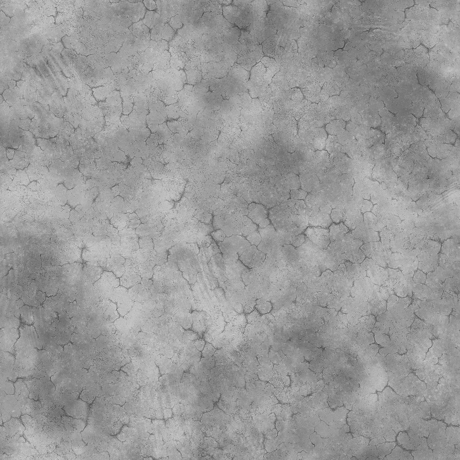 Weathered concrete texture with extensive cracking and surface damage in grey tones. Suitable for architectural visualization, construction scenes, urban environments, and industrial surface materials.