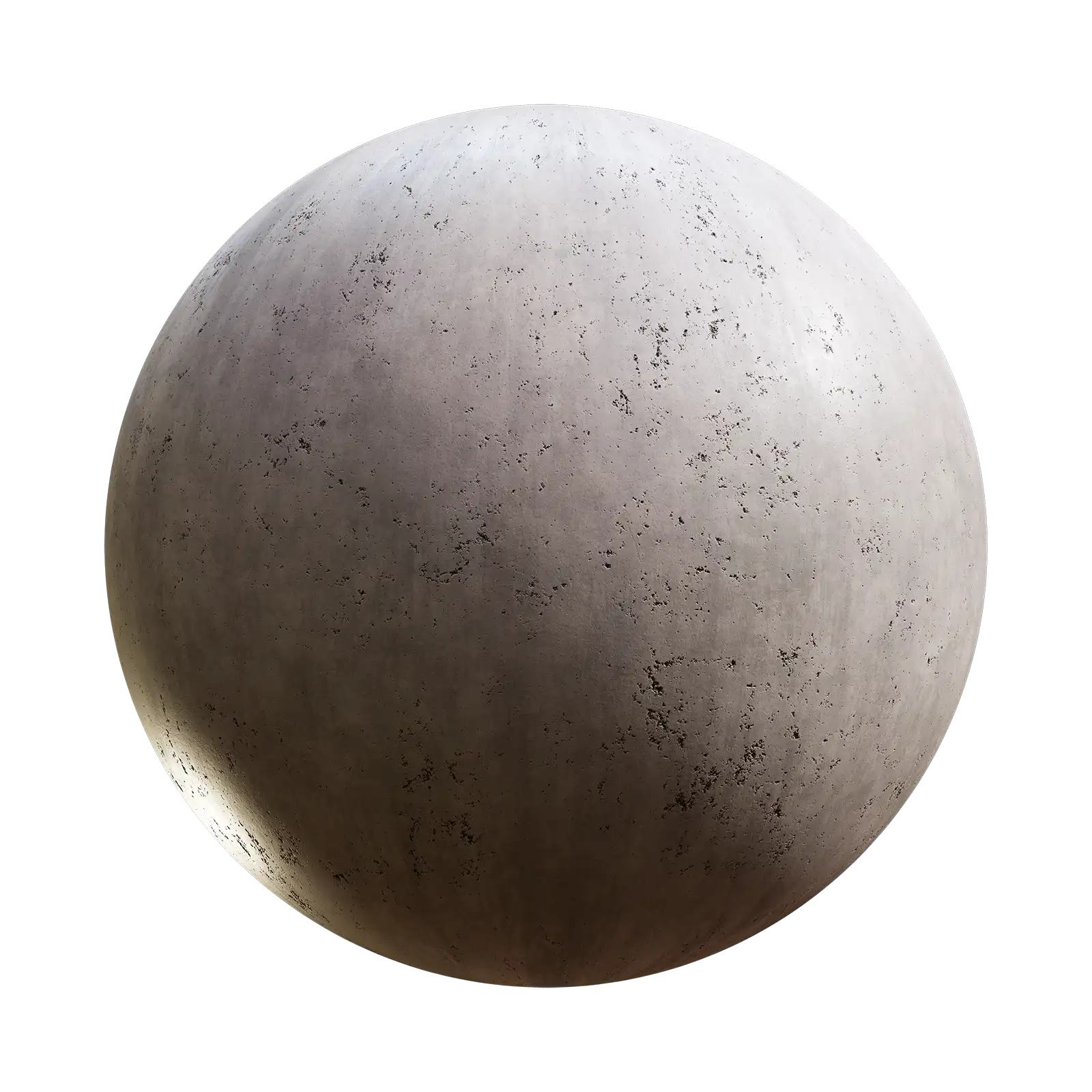 Weathered concrete PBR texture featuring grey to brown color variations with rough, aged surface characteristics and natural wear patterns. Suitable for architectural visualization, building exteriors, industrial environments, and construction-themed 3D scenes.