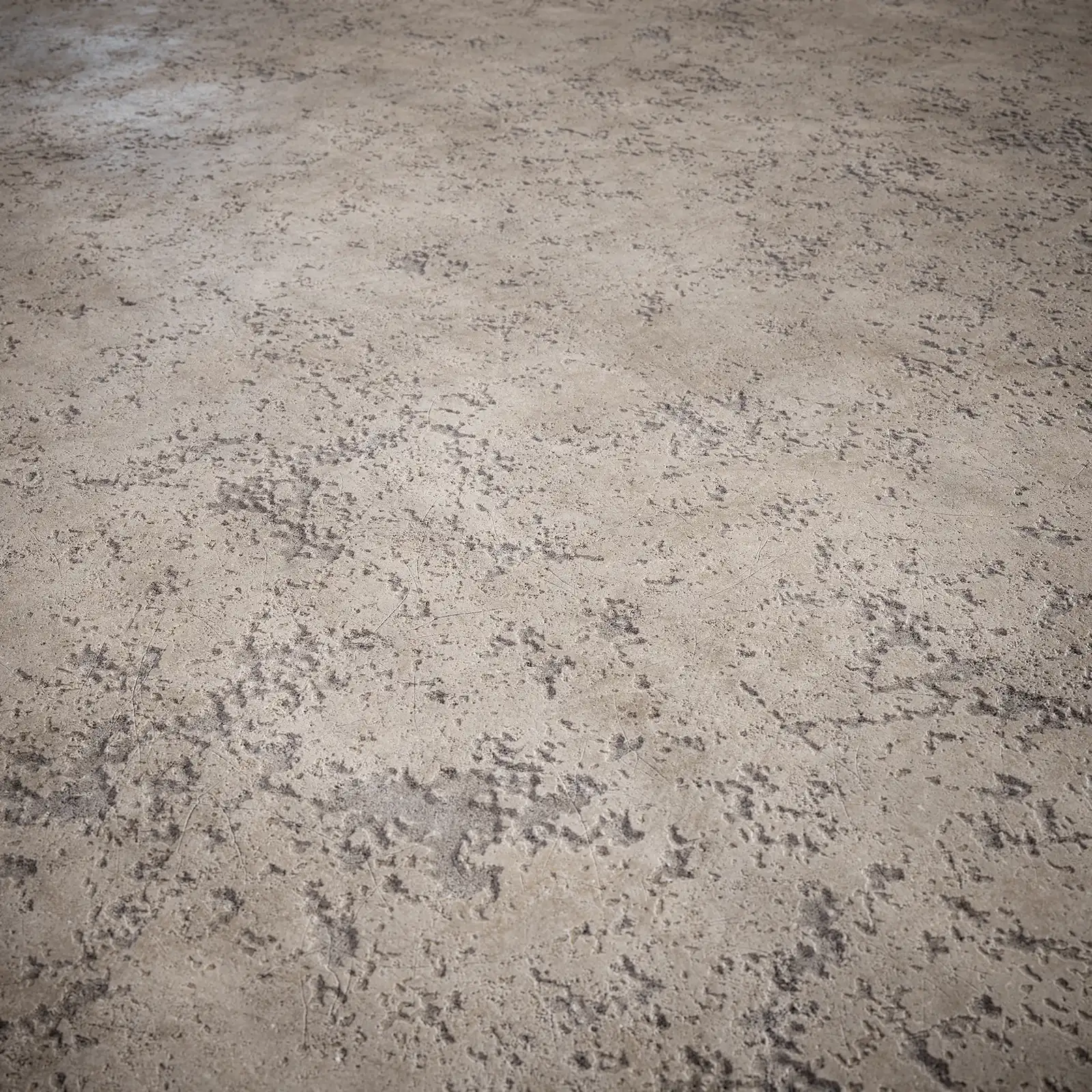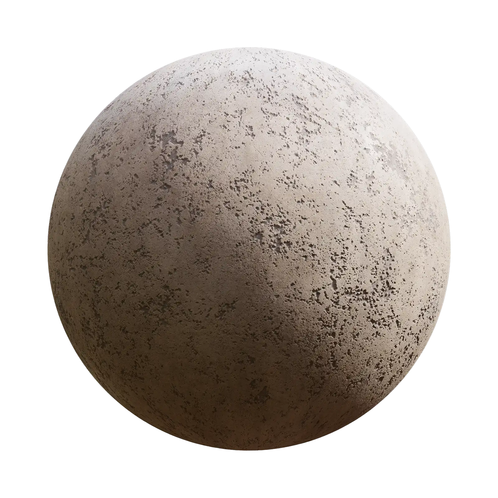 Weathered concrete texture with porous surface showing natural wear patterns and rough tactile finish in beige and brown tones. Suitable for architectural visualizations, industrial environments, building exteriors, and construction material applications in 3D rendering projects.