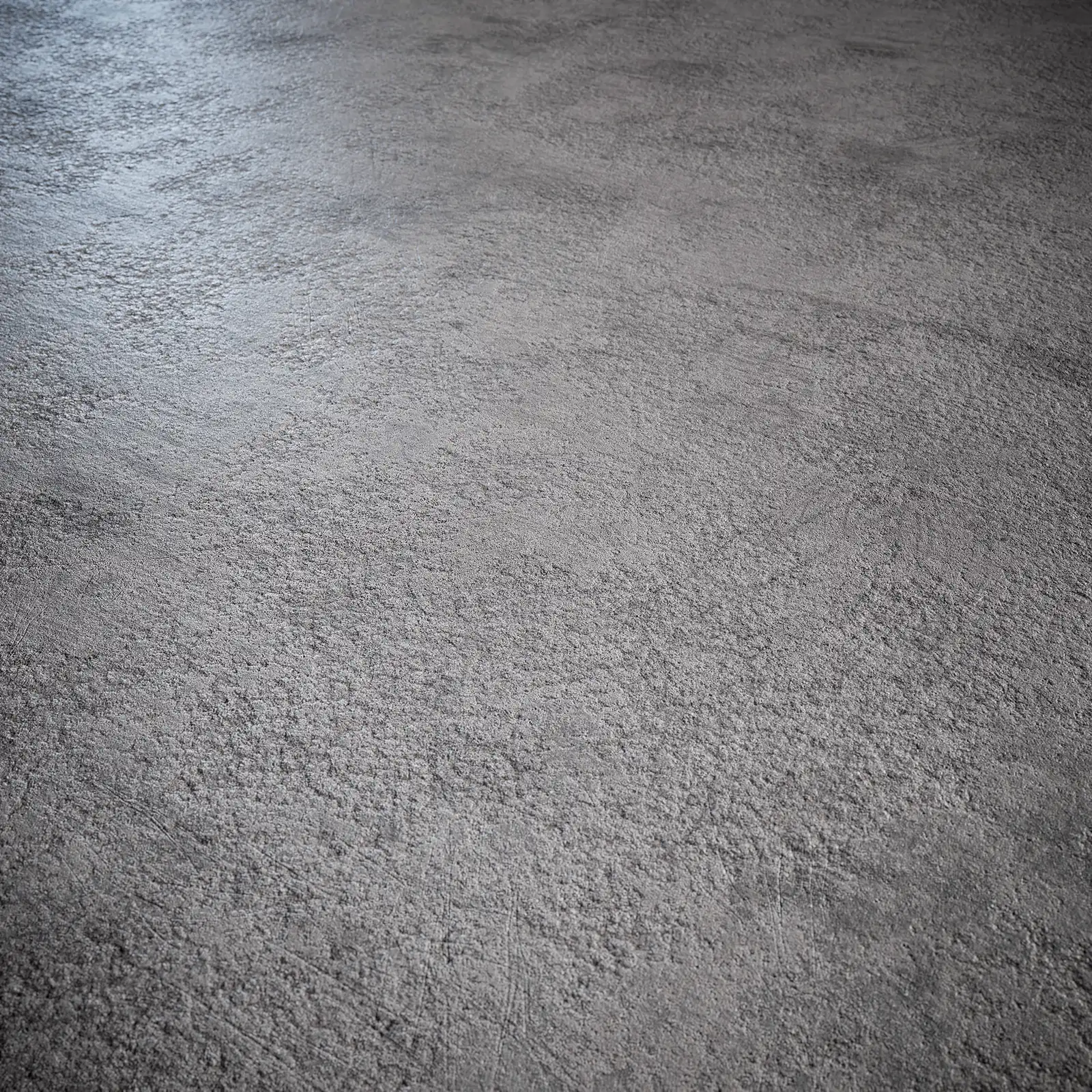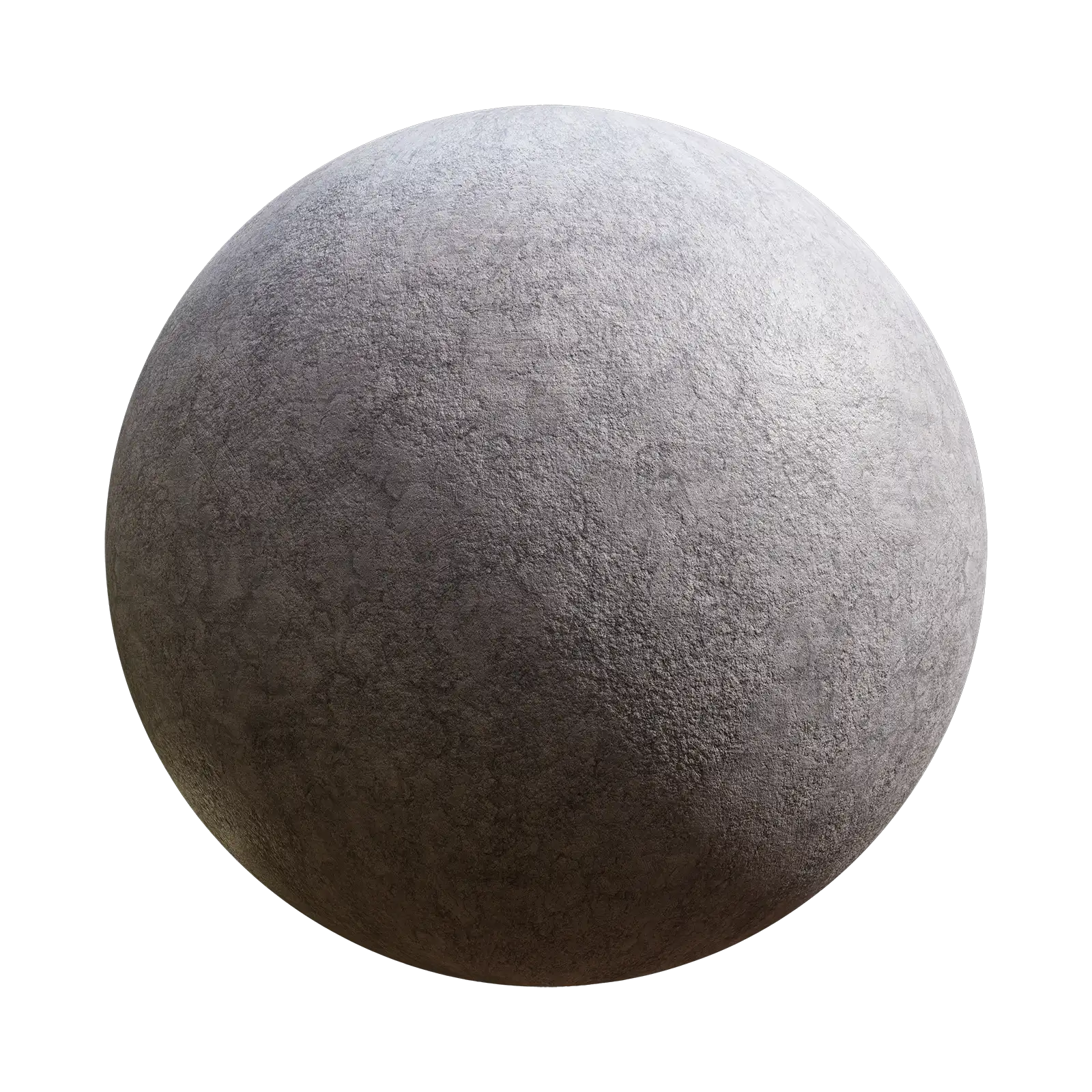 High-resolution PBR concrete texture featuring a rough, granular surface in grey tones with natural stone-like variations. This seamless material includes complete texture maps and is suitable for architectural visualization, construction elements, walls, flooring, and industrial environments in 3D rendering applications.