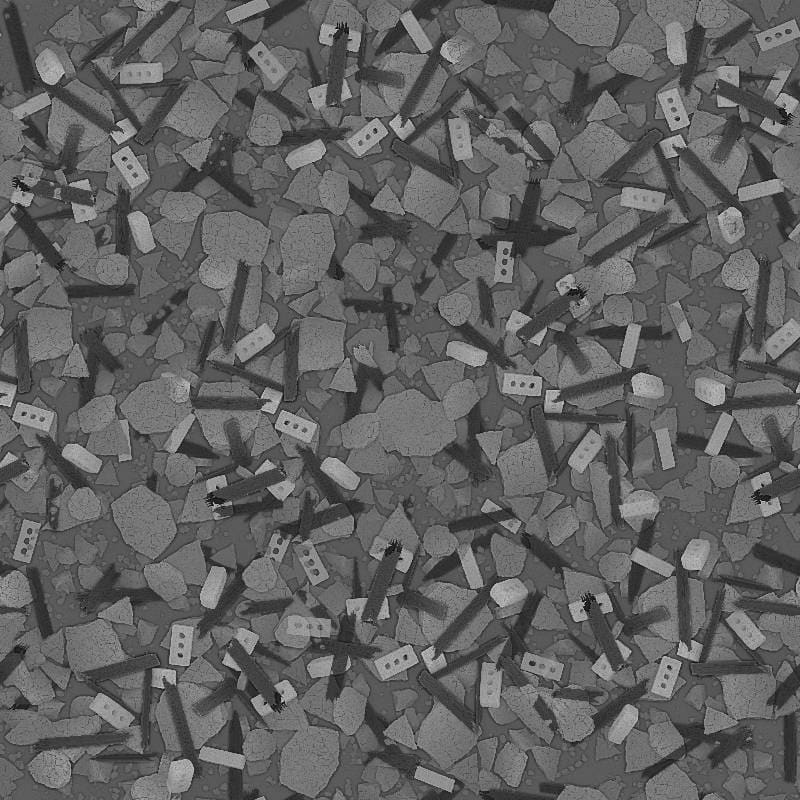 Seamless (tileable) Concrete and Wood Rubble PBR Texture with eight maps: albedo/diffuse, reflection, glossiness, height/displacement, roughness, metalness, ambient occlusion and normal map. Resolution: 8192x8192px and 4096x4096px.