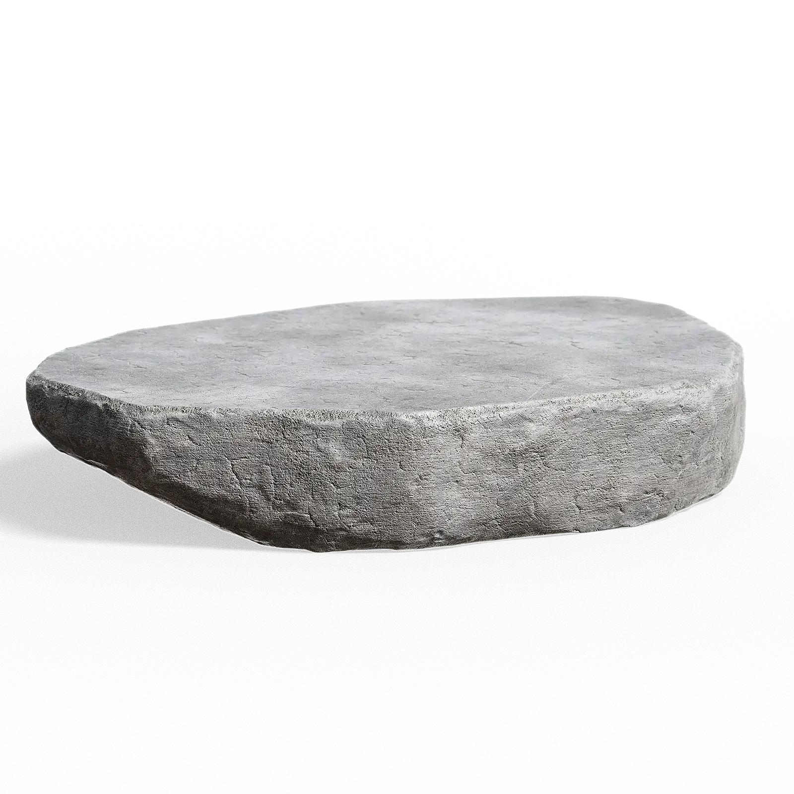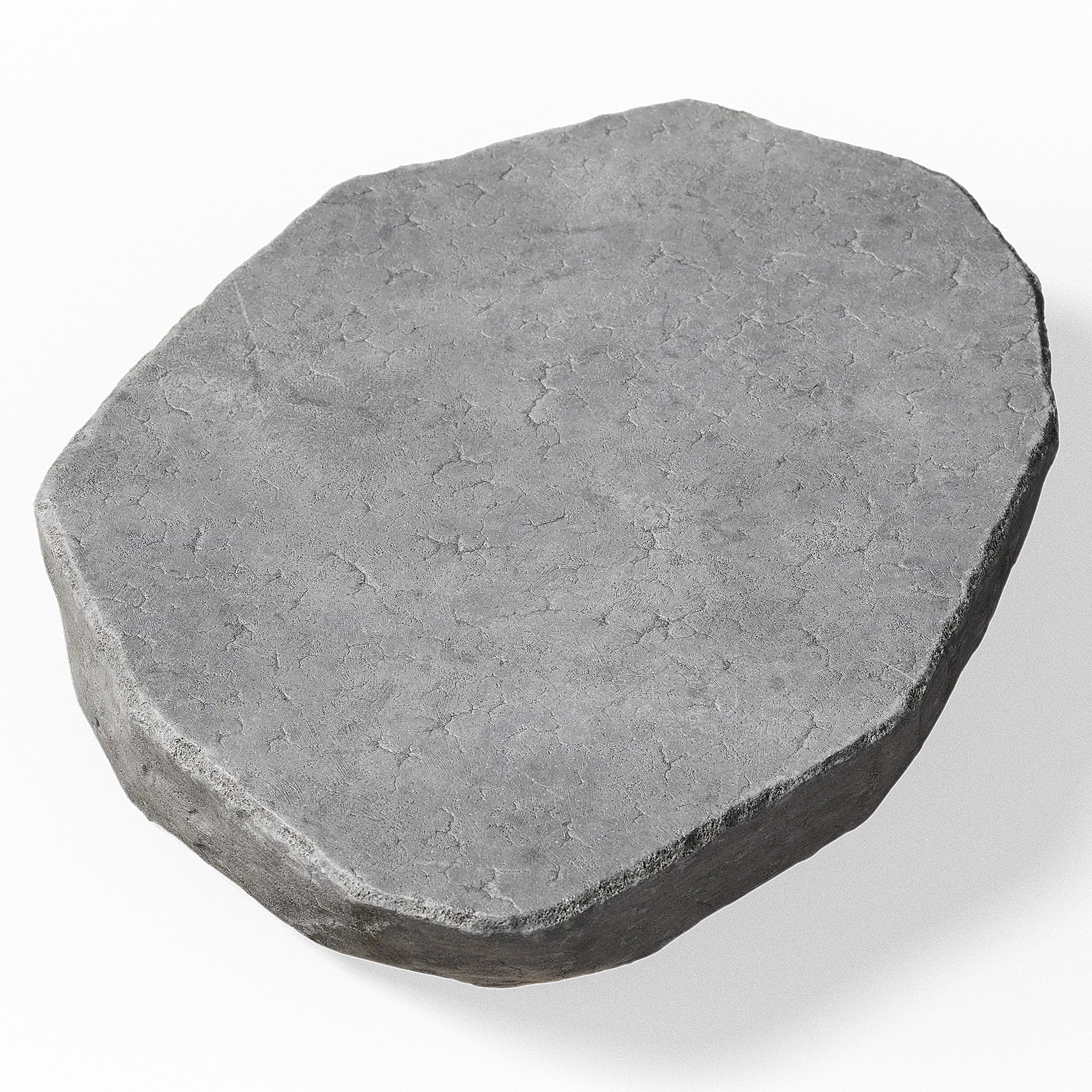 This concrete pedestal has a flat grey surface with rough textured edges and weathered appearance. The slab shows natural aging with subtle cracks and worn details. It works well as a base or platform in architectural and outdoor scenes.
