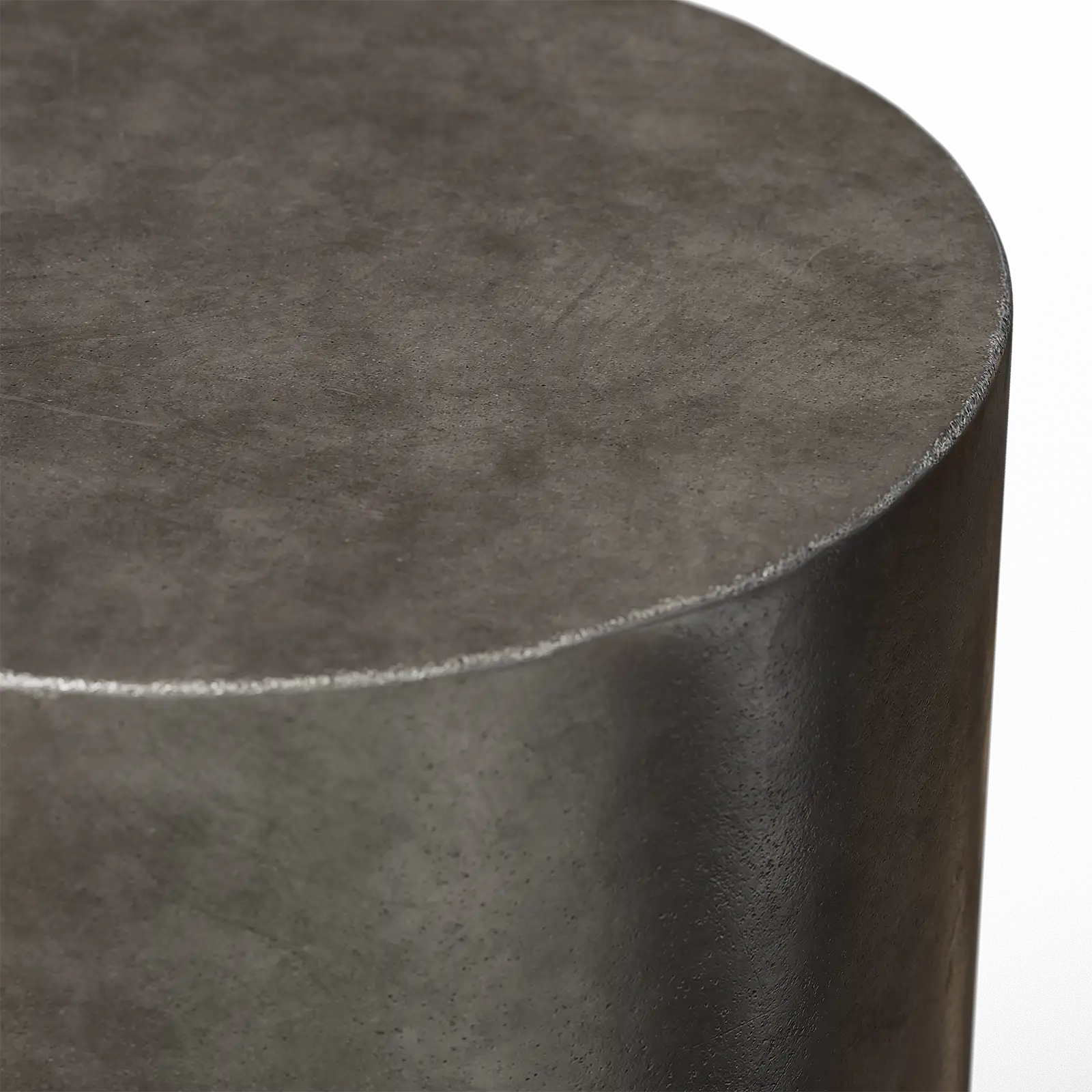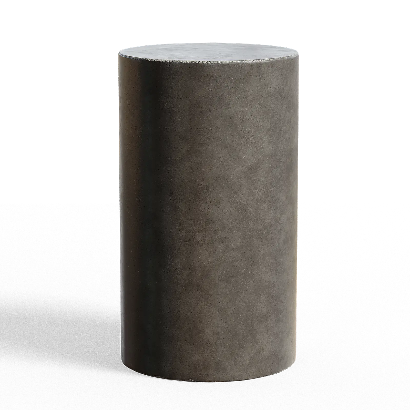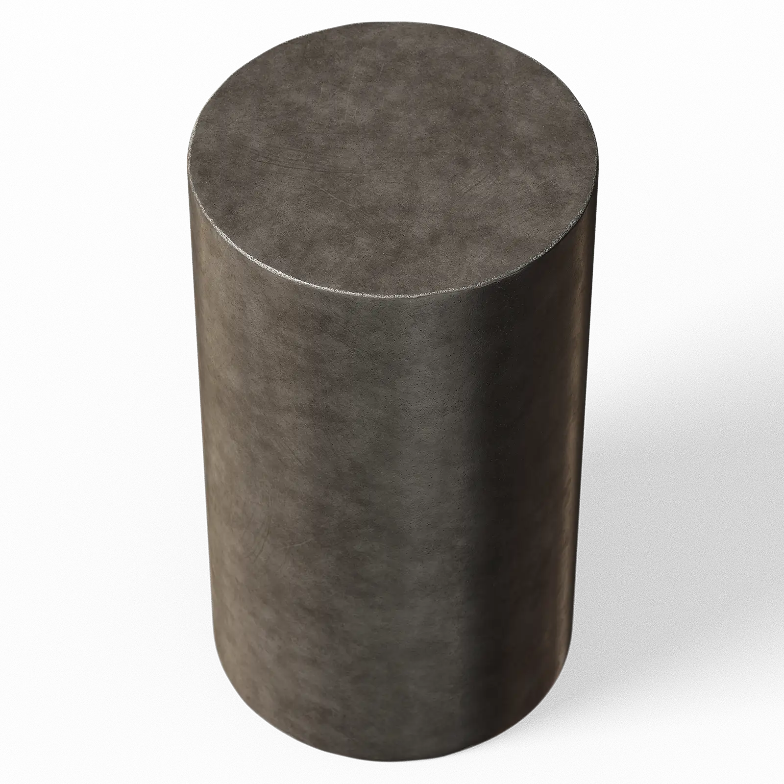 This concrete cylinder has a smooth grey surface with subtle texture variations. The pedestal displays clean geometric lines with minimal wear. It works well as a display base or architectural element in modern interior scenes.
