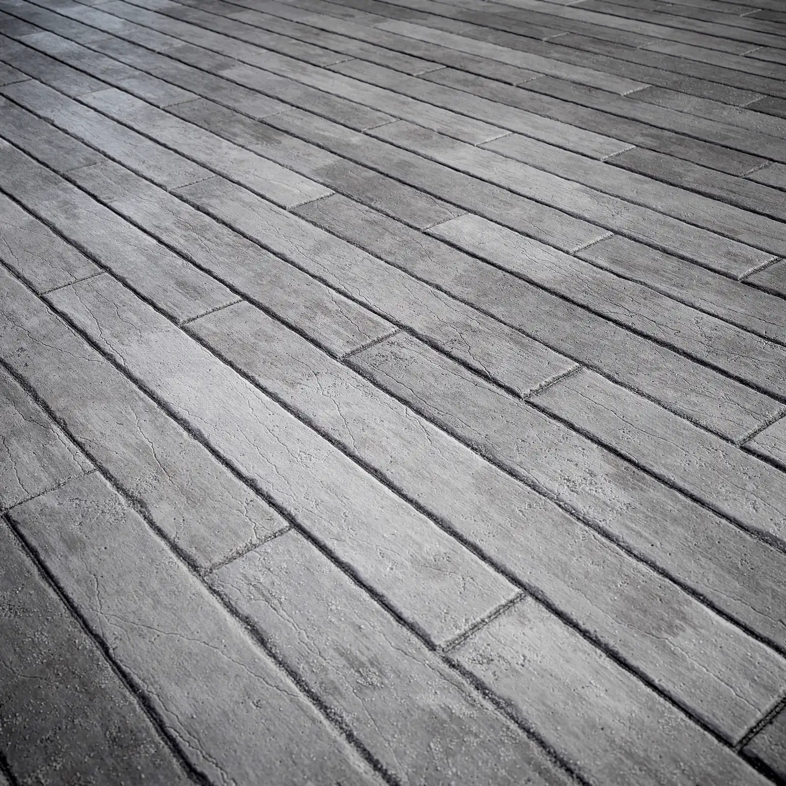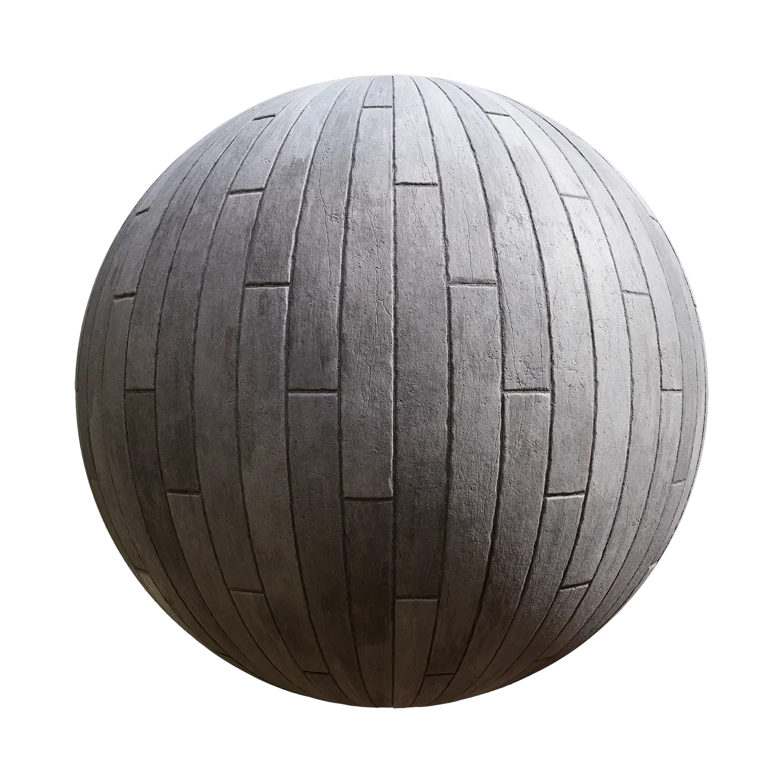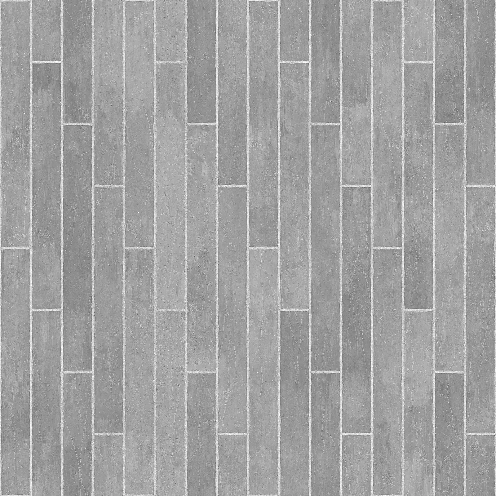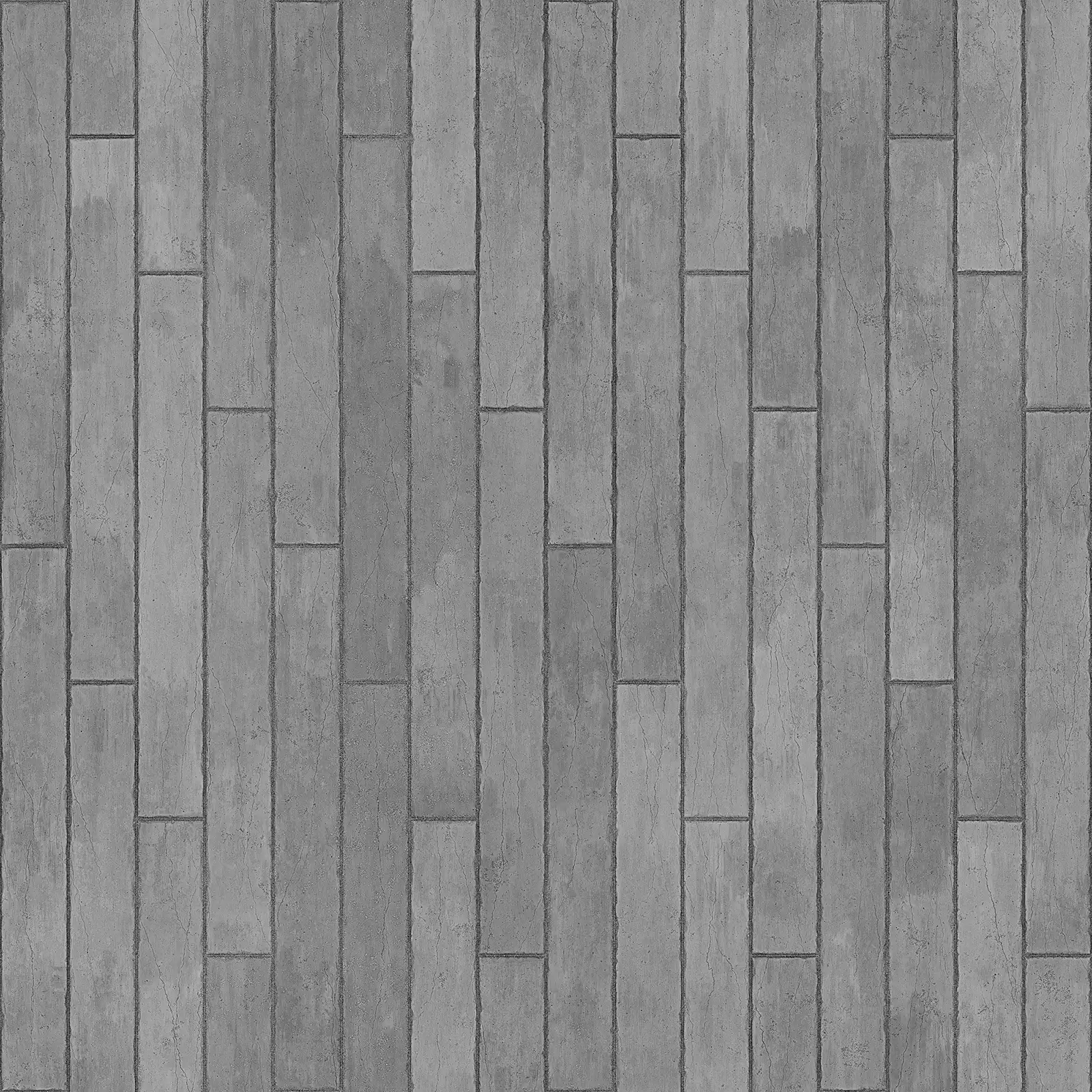 Grey concrete plank texture featuring rectangular segments arranged in an offset pattern with visible surface texture and dimensional depth. Suitable for architectural visualizations, exterior and interior walls, industrial environments, and modern building facades in 3D rendering projects.