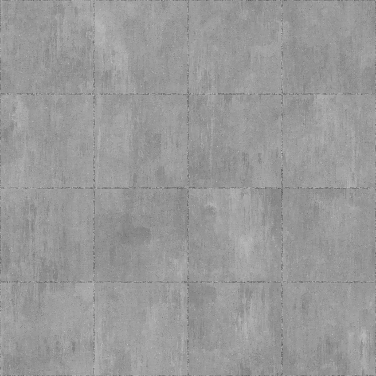 Gray concrete slab texture featuring rectangular panels divided by visible seams in a grid pattern. The weathered concrete surface displays subtle color variations and worn characteristics, suitable for architectural visualization, building exteriors, industrial environments, and construction-themed 3D scenes.