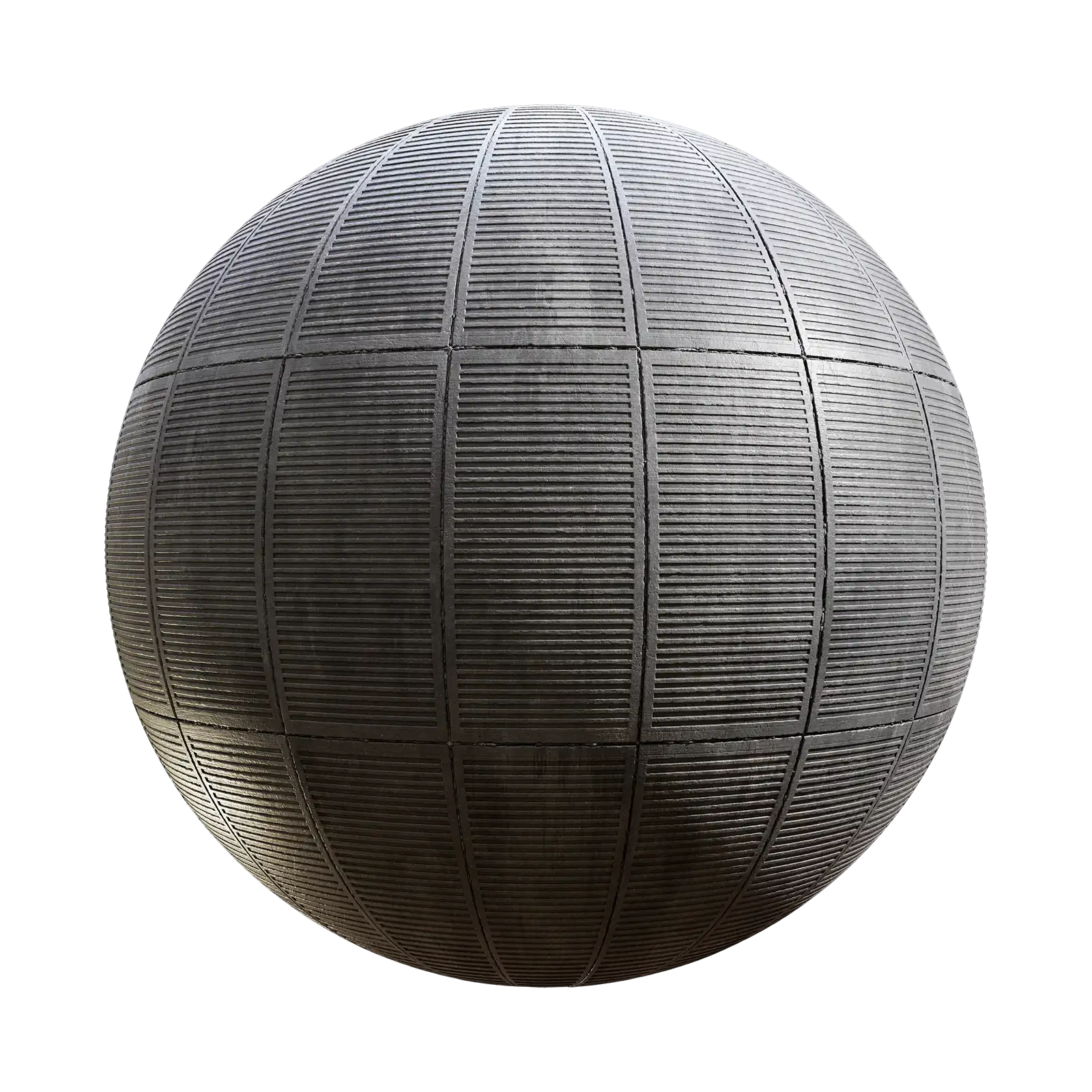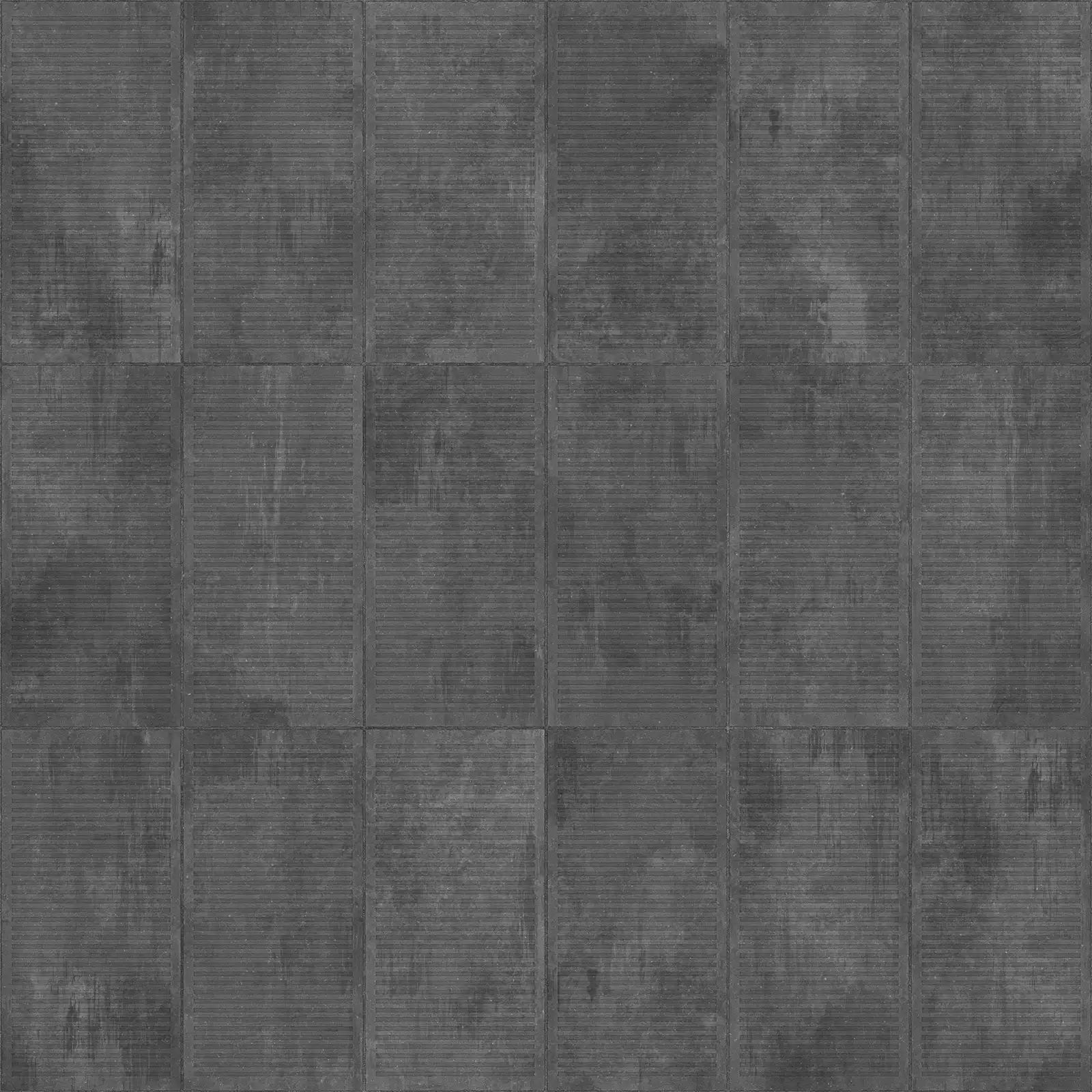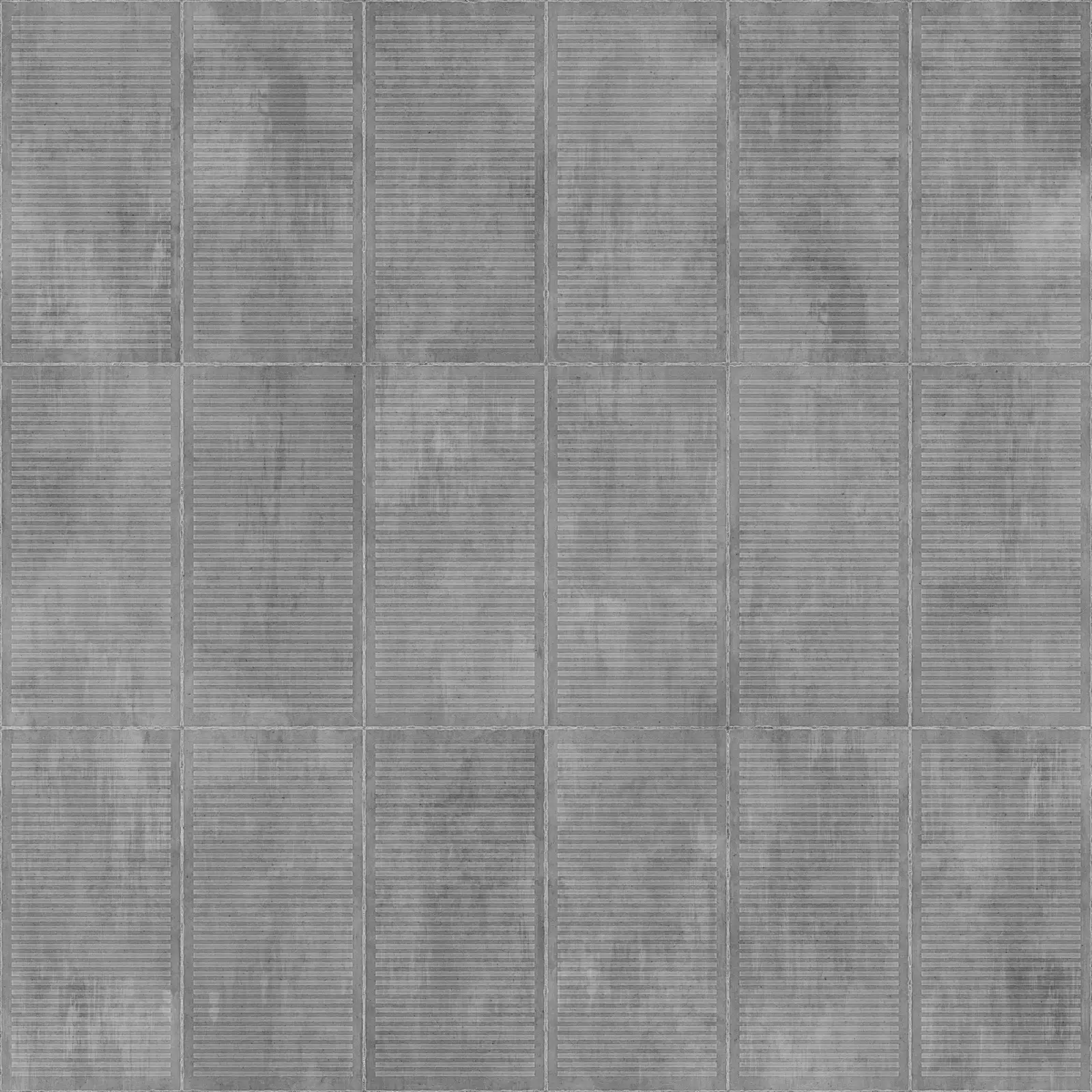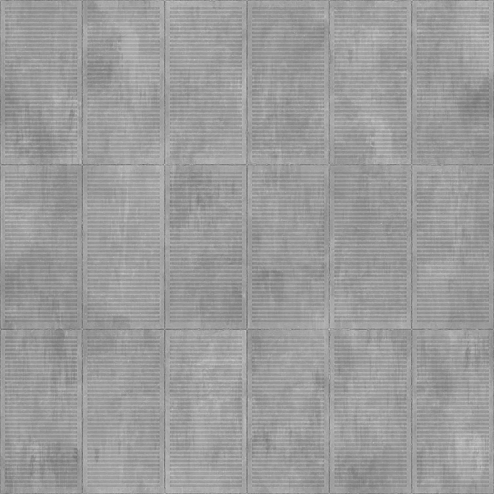 Concrete slab texture featuring horizontal ribbed pattern with parallel corrugated lines and segmented panel divisions in grey tones. Suitable for architectural visualizations, building exteriors, industrial structures, and modern construction projects requiring realistic concrete surface materials.