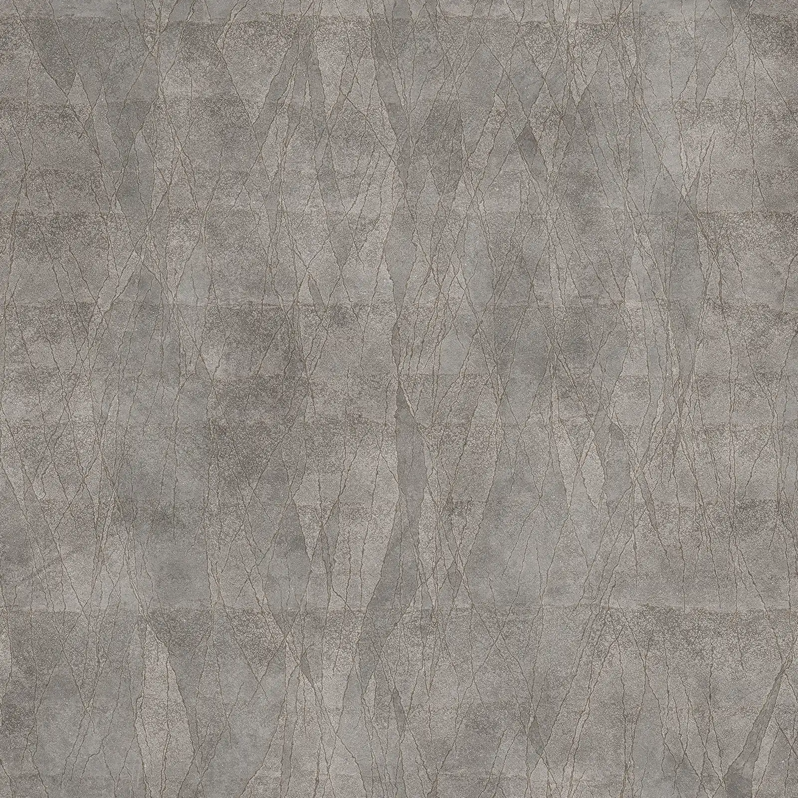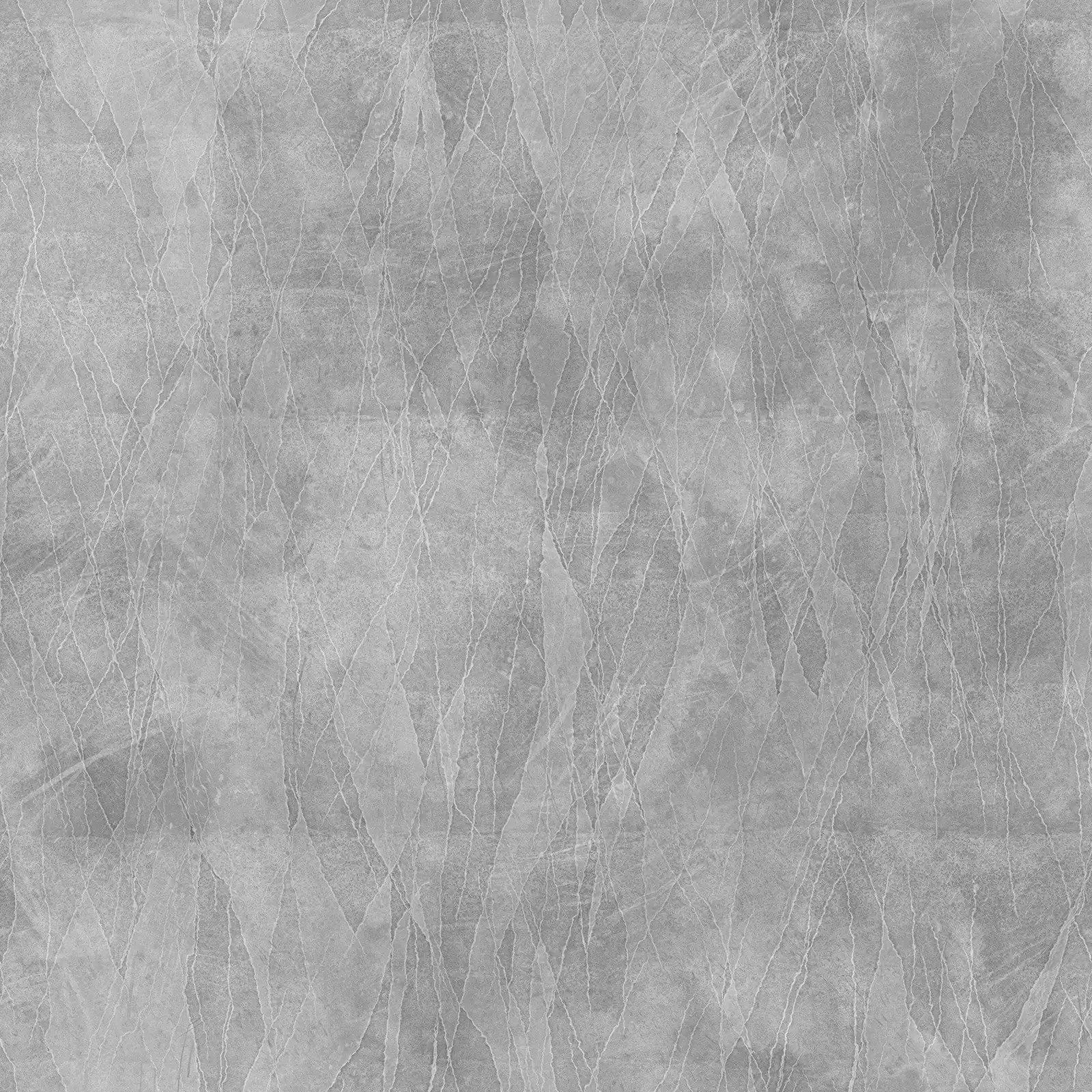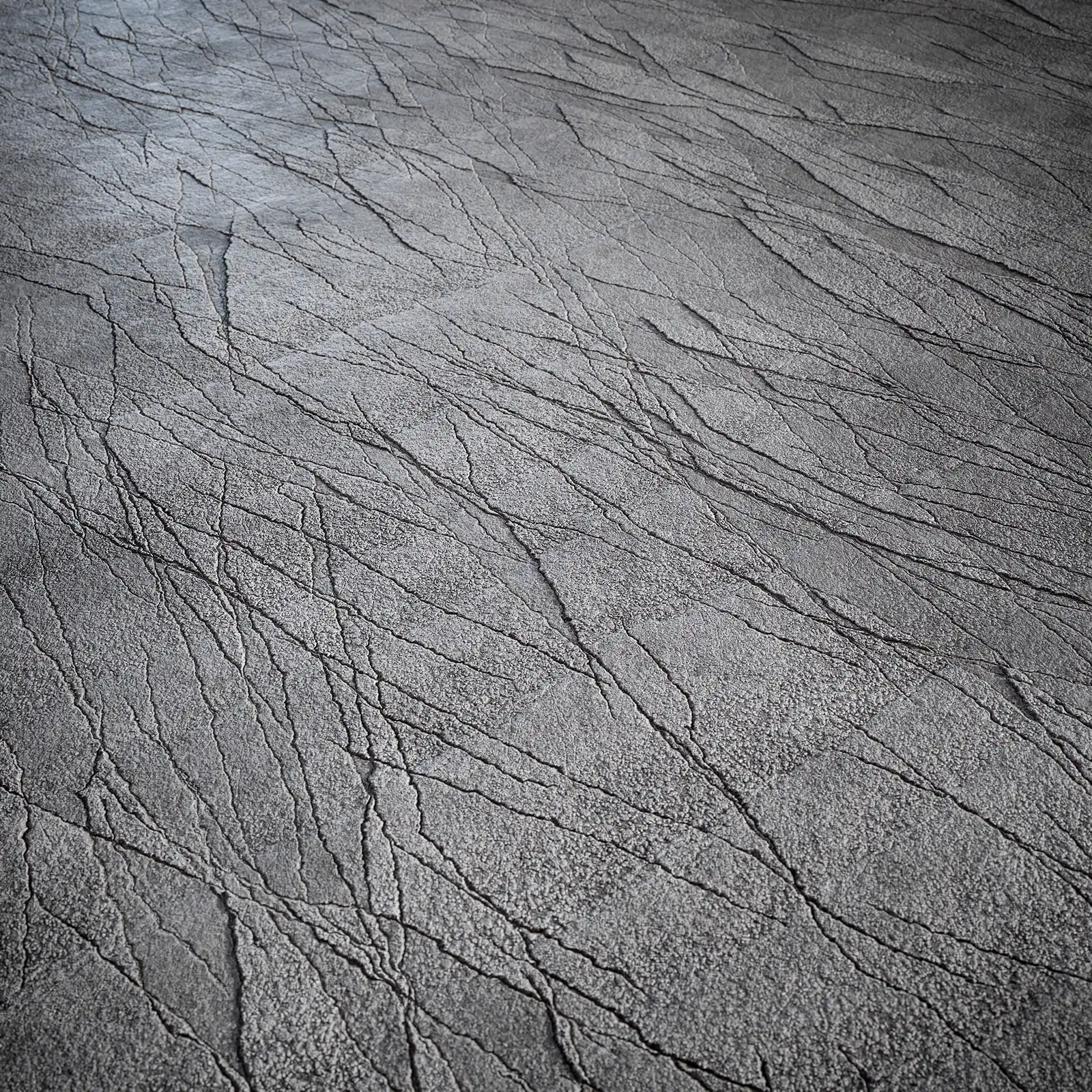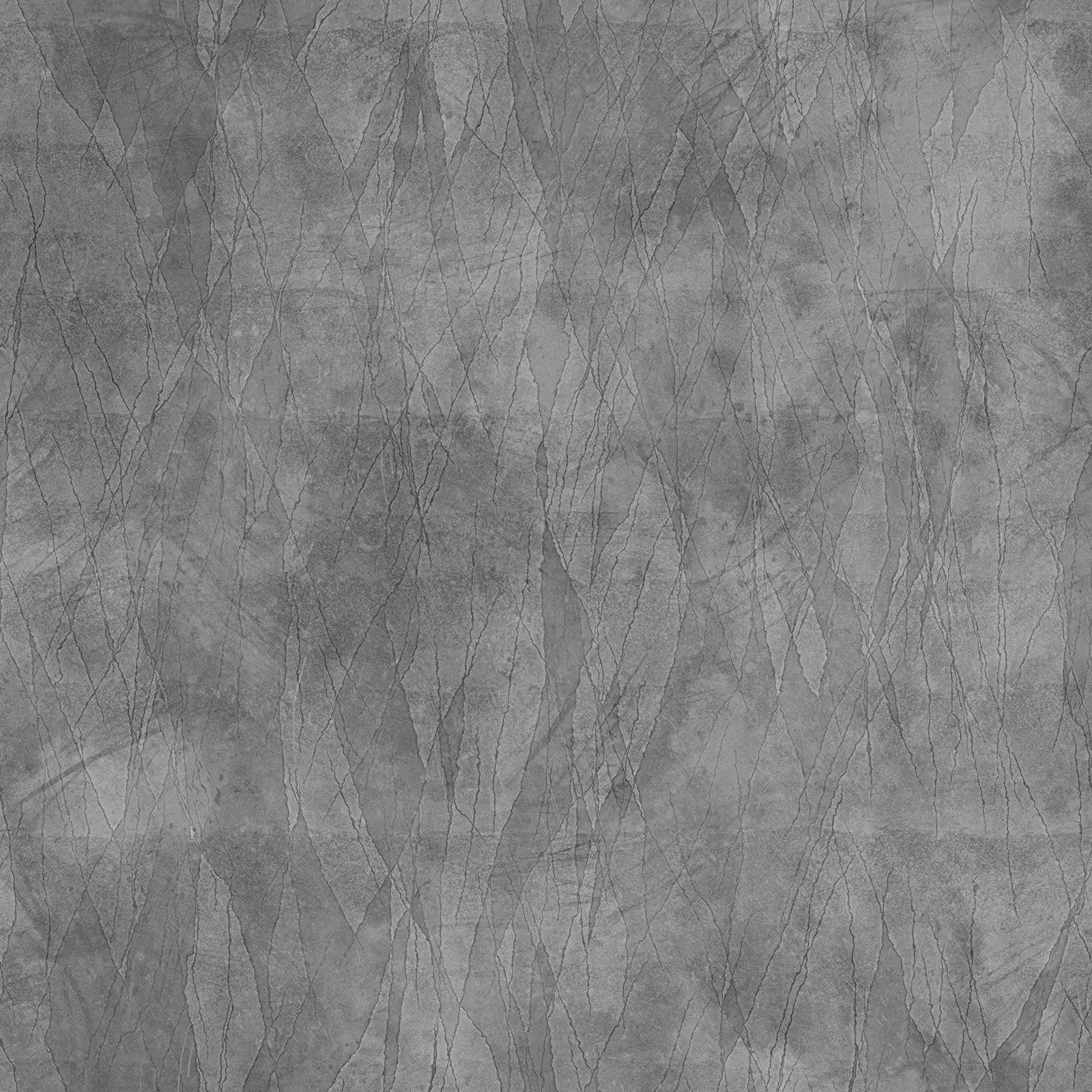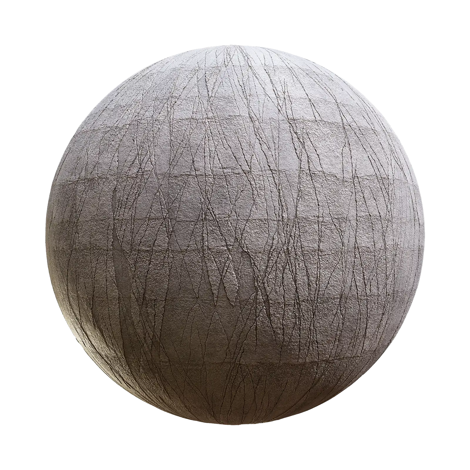 Weathered concrete texture featuring extensive crack patterns across a grey-brown surface with visible wear and aging effects. Suitable for architectural visualizations, post-apocalyptic scenes, industrial environments, and damaged building surfaces in 3D rendering projects.