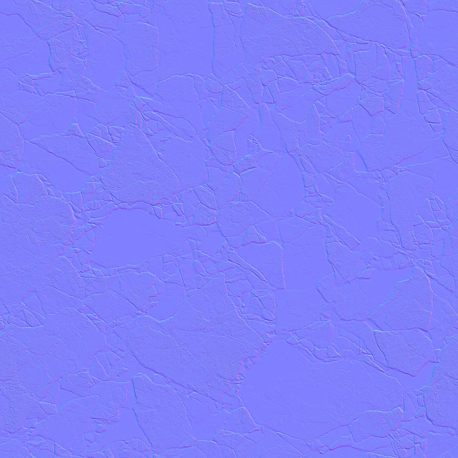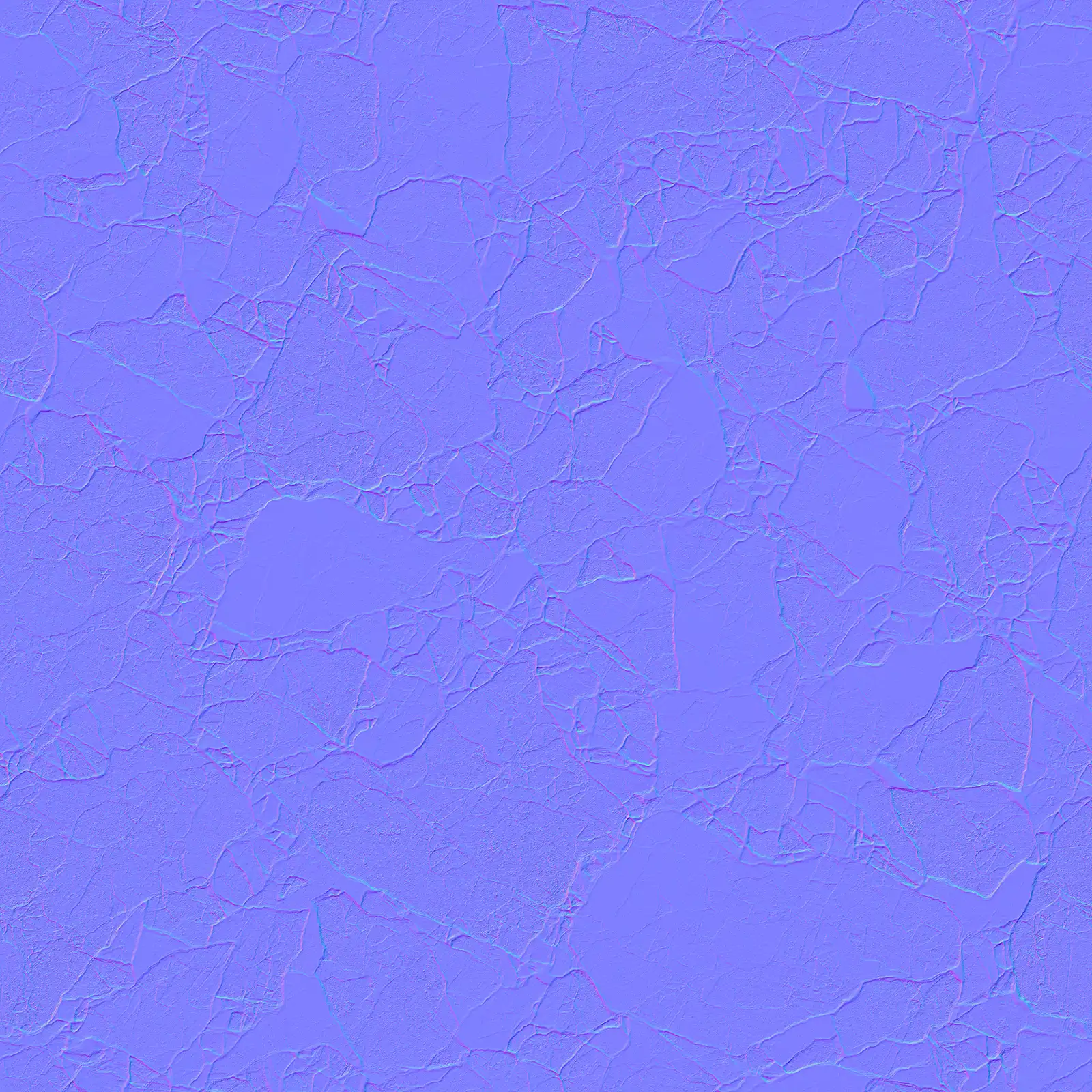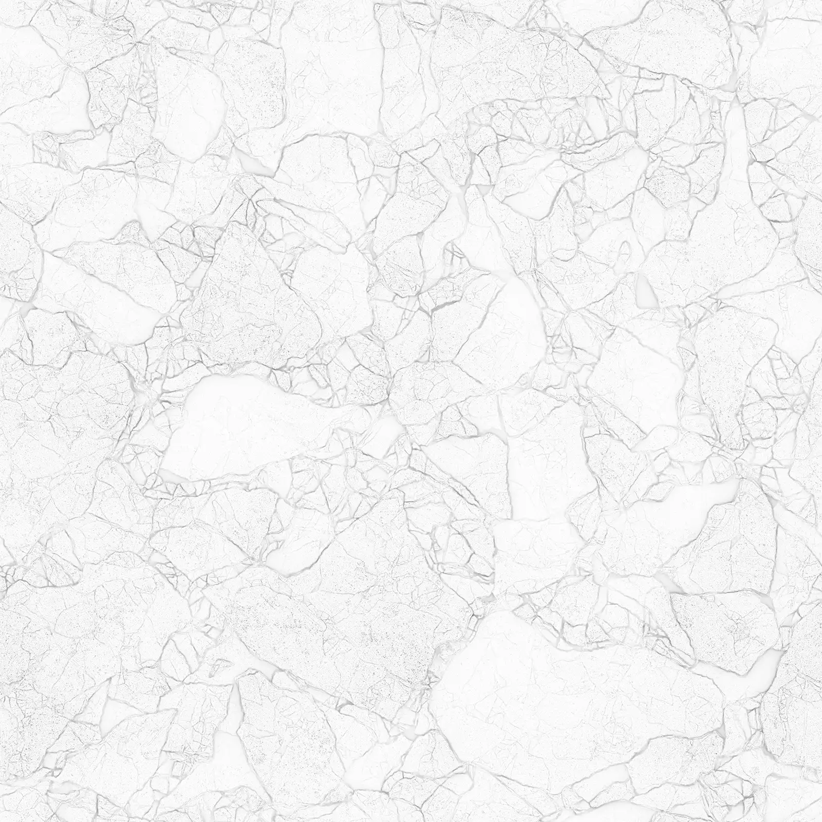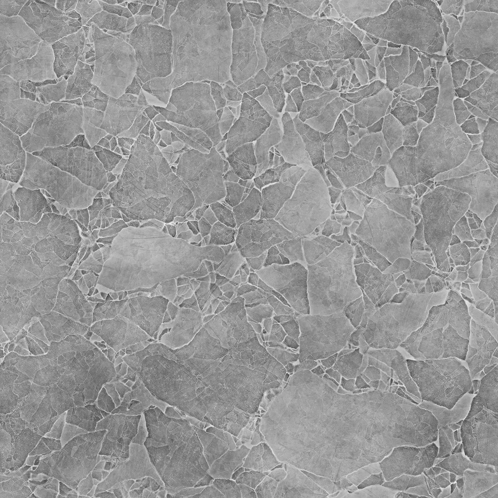 Cracked concrete PBR texture featuring extensive fissure patterns across a grey and white surface with weathered appearance. Suitable for architectural visualization, post-apocalyptic environments, damaged building surfaces, and industrial scene applications requiring realistic concrete materials with structural damage details.