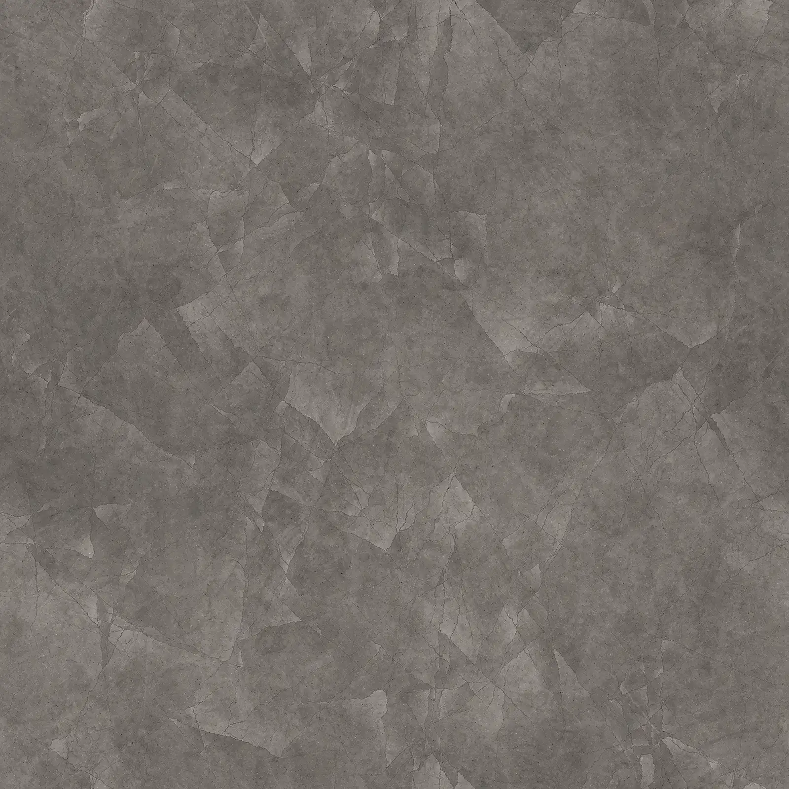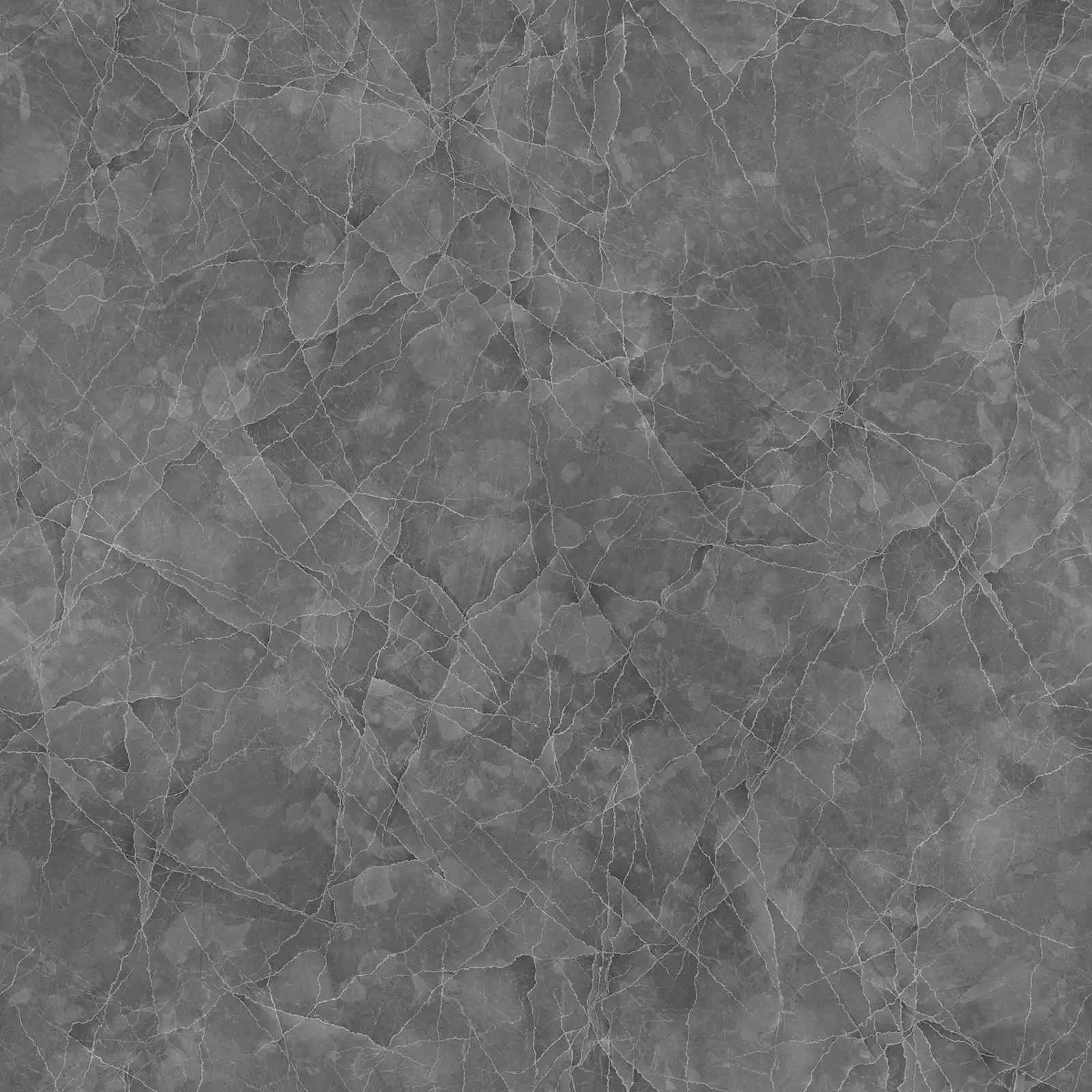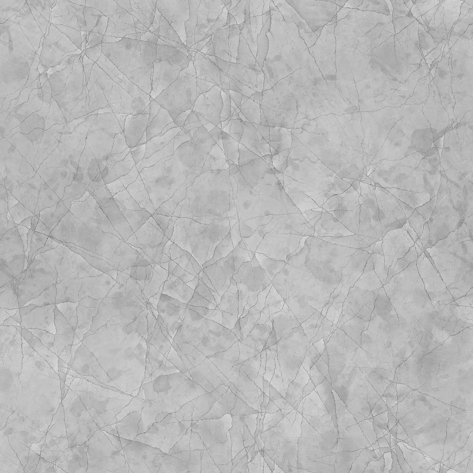 Polished concrete PBR texture featuring extensive crack patterns across a smooth grey surface with subtle reflective properties. Suitable for architectural visualization, damaged infrastructure scenes, weathered building exteriors, and realistic surface materials in 3D environments.