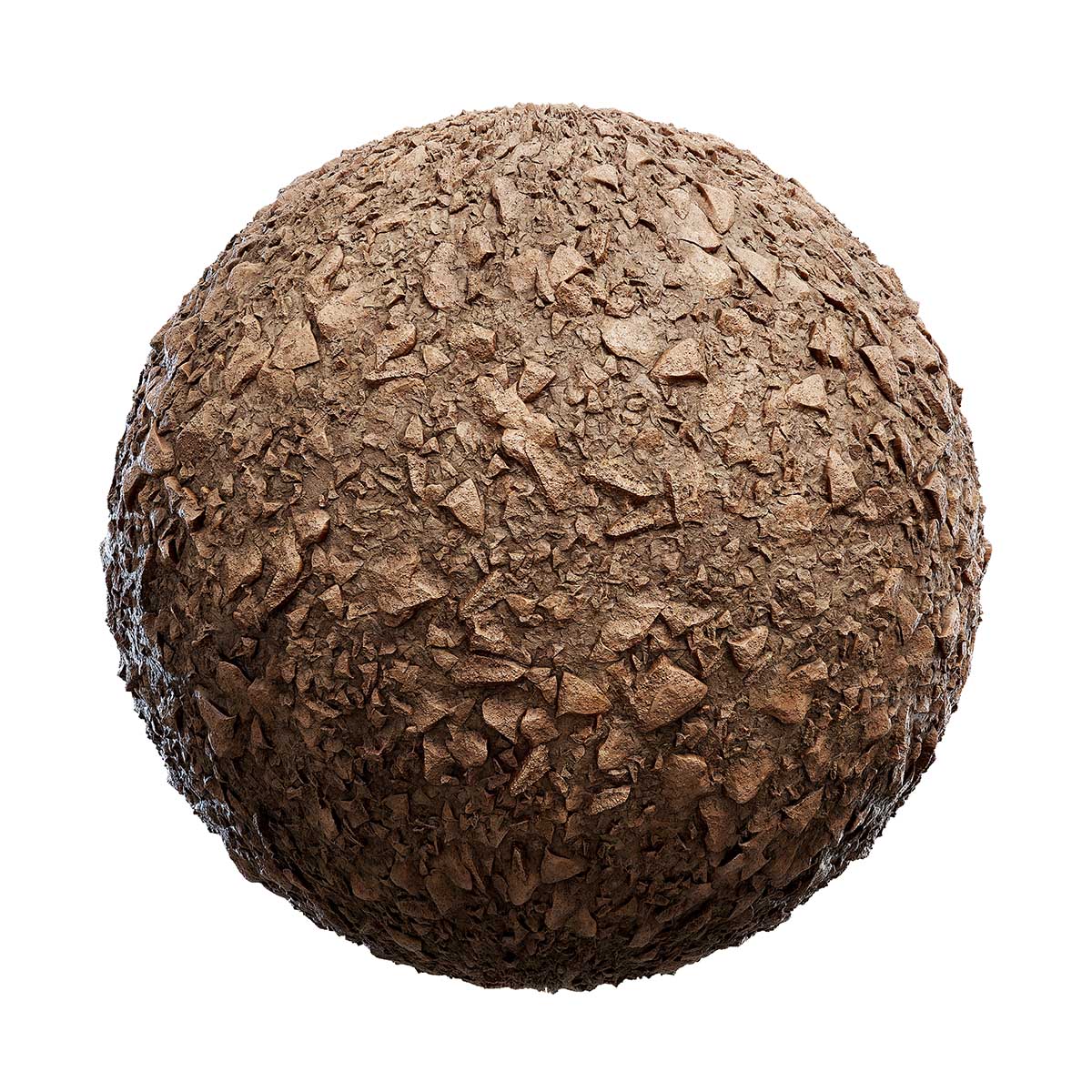 Seamless (tileable) Damaged Brown Clay Fragments PBR Texture with eight maps: albedo/diffuse, reflection, glossiness, height/displacement, roughness, metalness, ambient occlusion and normal map. Resolution: 8192x8192px and 4096x4096px.