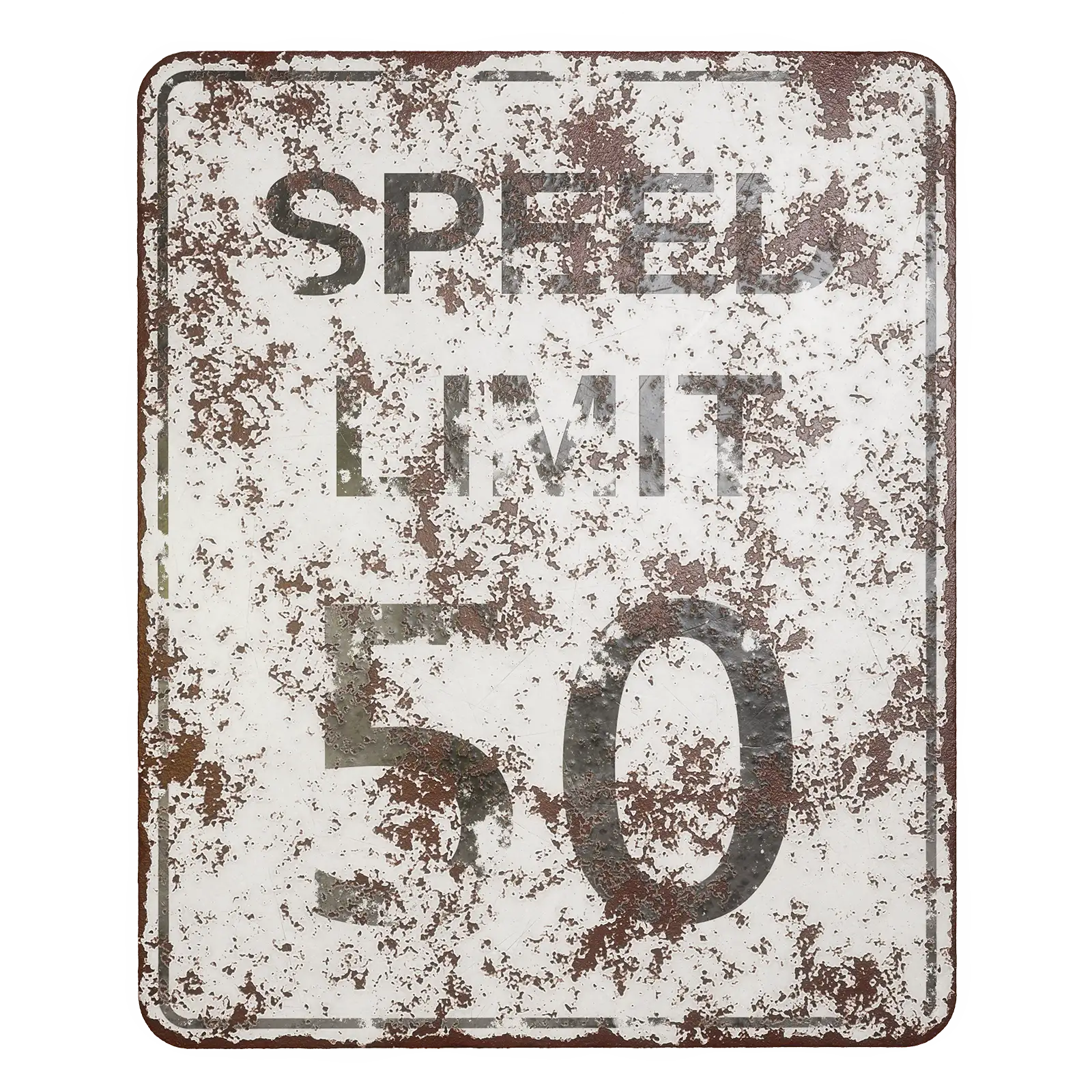 Damaged Speed Limit Sign with maps: basecolor/diffuse, glossiness, height (TIFF), IOR, metallic, normal (DirectX), normal (OpenGL), reflection, roughness and specular. Resolution: 8192x8192px and 4096x4096px.
