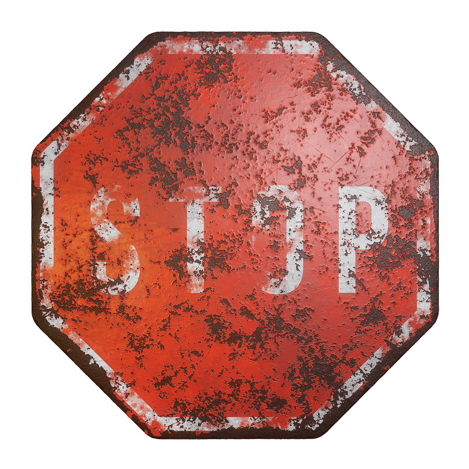 Damaged Stop Sign with maps: basecolor/diffuse, glossiness, height (TIFF), IOR, metallic, normal (DirectX), normal (OpenGL), reflection, roughness and specular. Resolution: 8192x8192px and 4096x4096px.