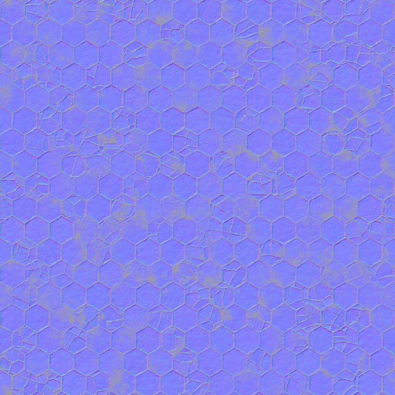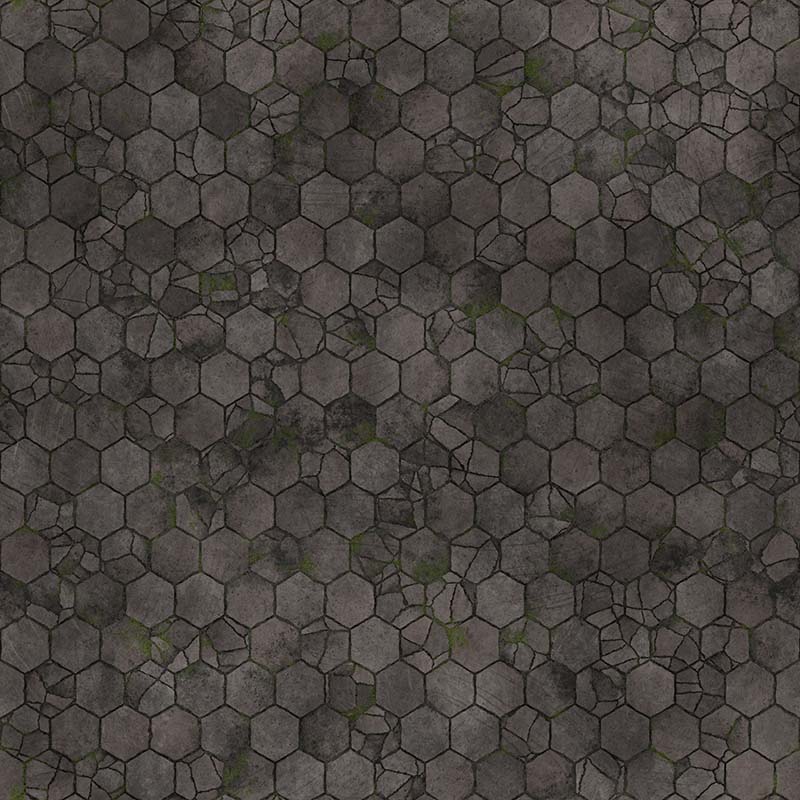 Seamless (tileable) Damageded Hexagon Concrete Pavement with Moss PBR Texture with eight maps: albedo/diffuse, reflection, glossiness, height/displacement, roughness, metalness, ambient occlusion and normal map. Resolution: 8192x8192px and 4096x4096px.
