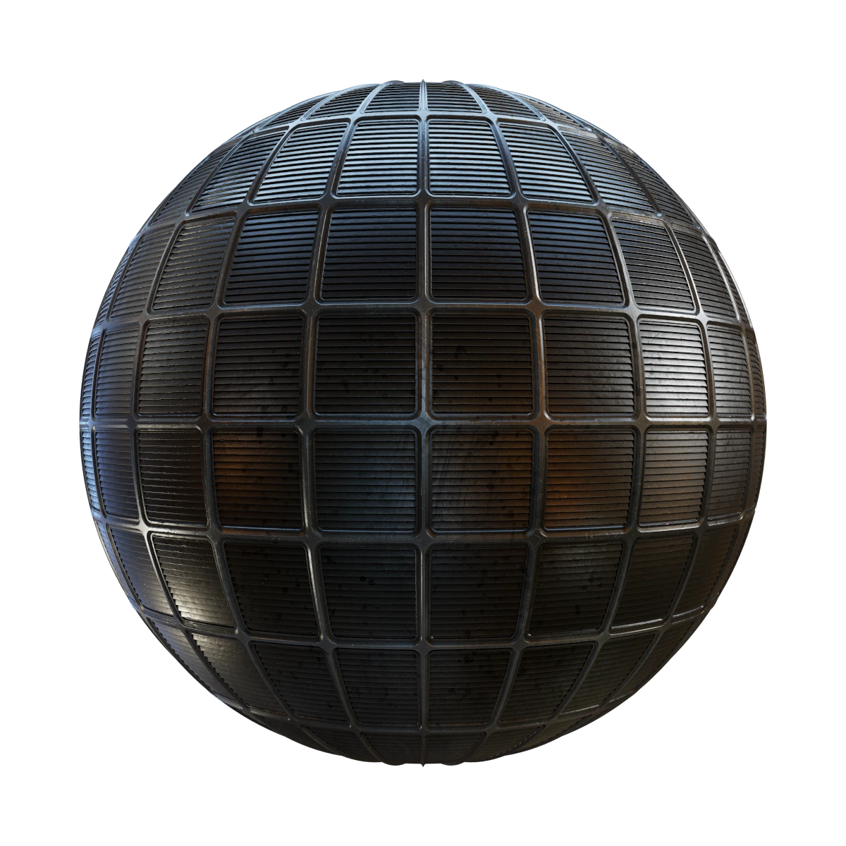 Dark Metal Vents PBR Texture with maps: basecolor/diffuse, glossiness, height (TIFF), IOR, metallic, normal (DirectX), normal (OpenGL), reflection, roughness and specular. Resolution: 8192x8192px and 4096x4096px.
