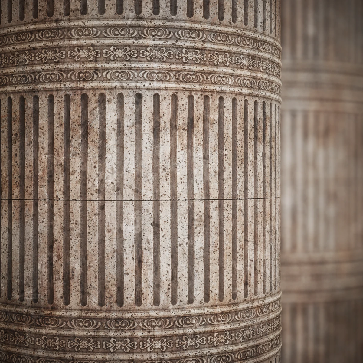 Dirty Stone Pillar PBR Texture with maps: basecolor/diffuse, glossiness, height (TIFF), IOR, metallic, normal (DirectX), normal (OpenGL), reflection, roughness and specular. Resolution: 8192x8192px and 4096x4096px.