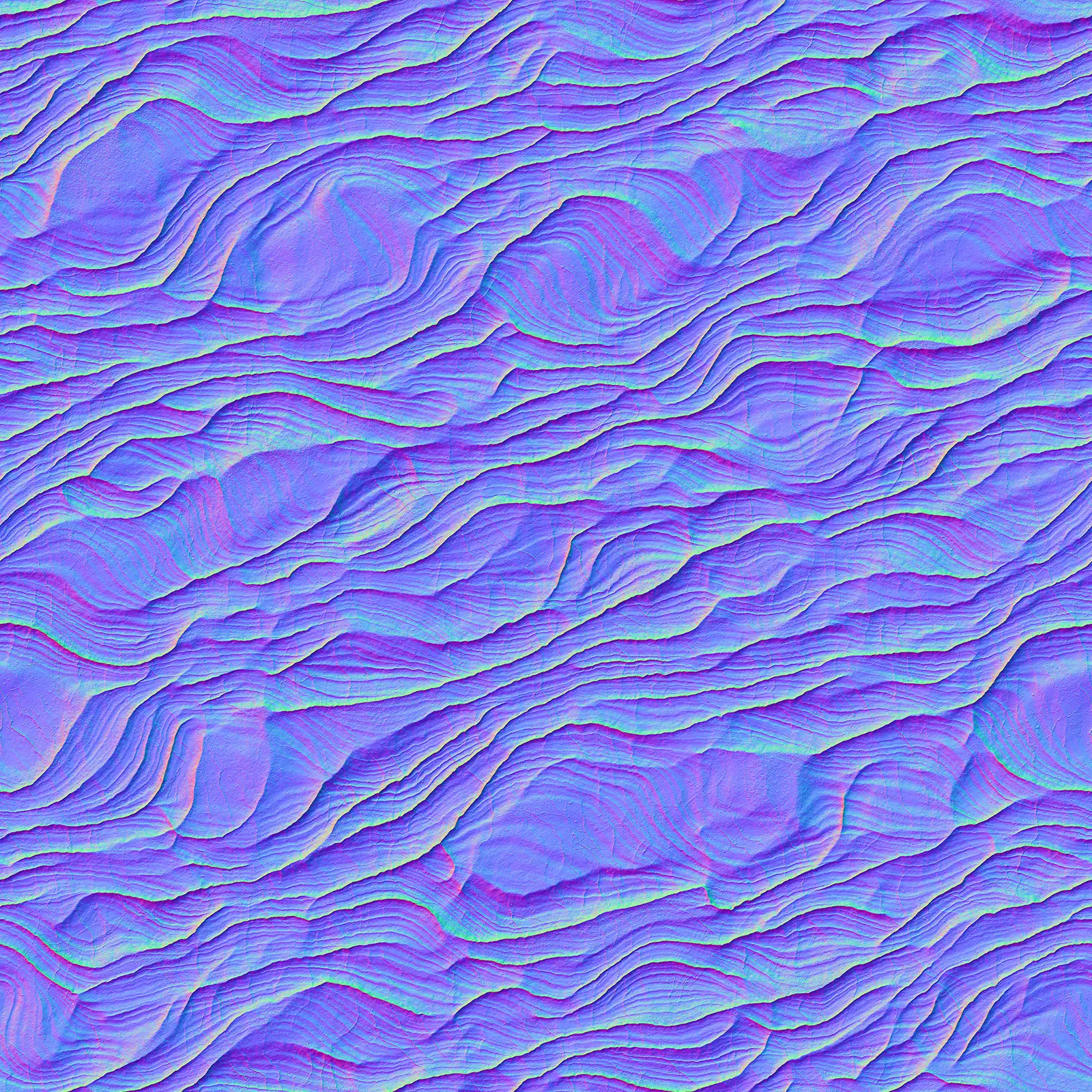 Dusty Wavy Rock with maps: basecolor/diffuse, glossiness, height (TIFF), IOR, metallic, normal (DirectX), normal (OpenGL), reflection, roughness and specular. Resolution: 8192x8192px and 4096x4096px.