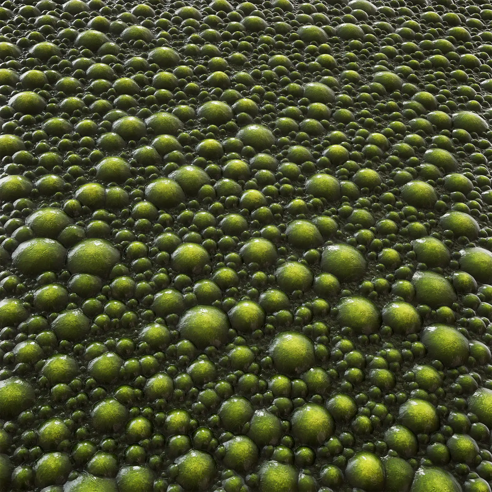 Green Alien Eggs with maps: basecolor/diffuse, glossiness, height (TIFF), IOR, metallic, normal (DirectX), normal (OpenGL), reflection, roughness and specular. Resolution: 8192x8192px and 4096x4096px.