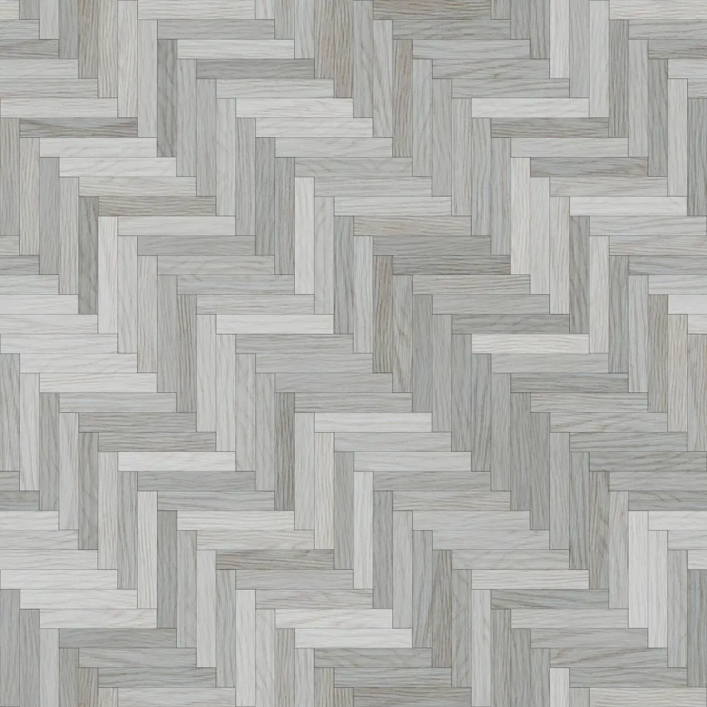 Grey Herringbone Wood Parquet PBR Texture with eight maps: albedo/diffuse, reflection, glossiness, height/displacement, roughness, metalness, ambient occlusion and normal map. Resolution: 8192x8192px and 4096x4096px.