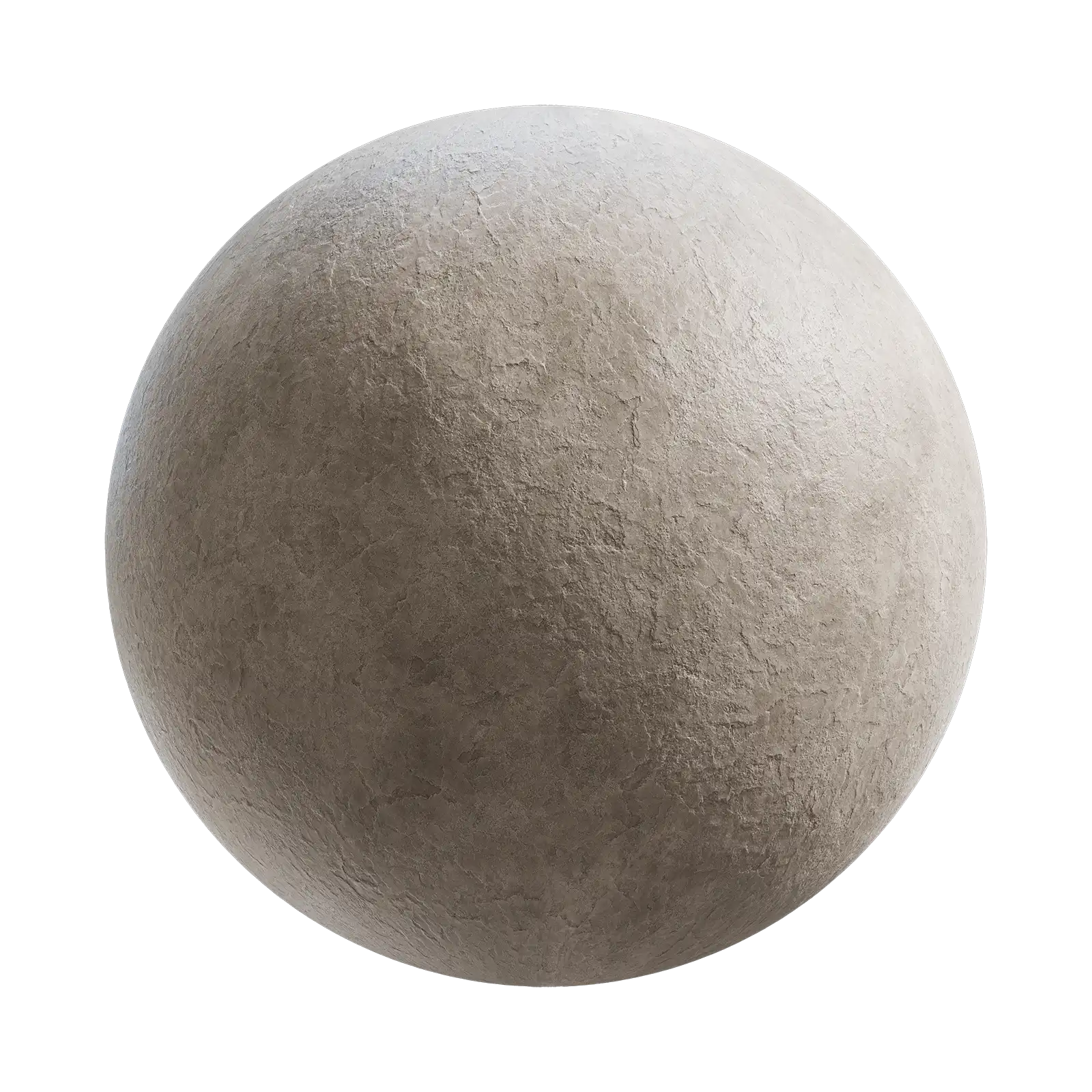 This plaster wall texture has a rough, mottled grey-beige surface with visible cracks and natural imperfections. The material shows weathered characteristics with subtle color variations across the surface. This texture works well for interior and exterior architectural visualizations.