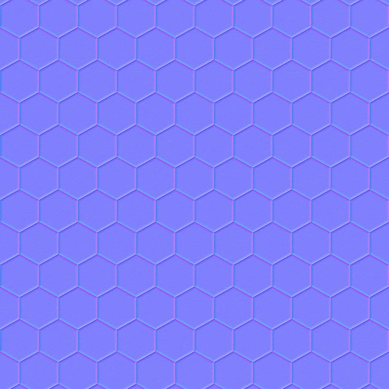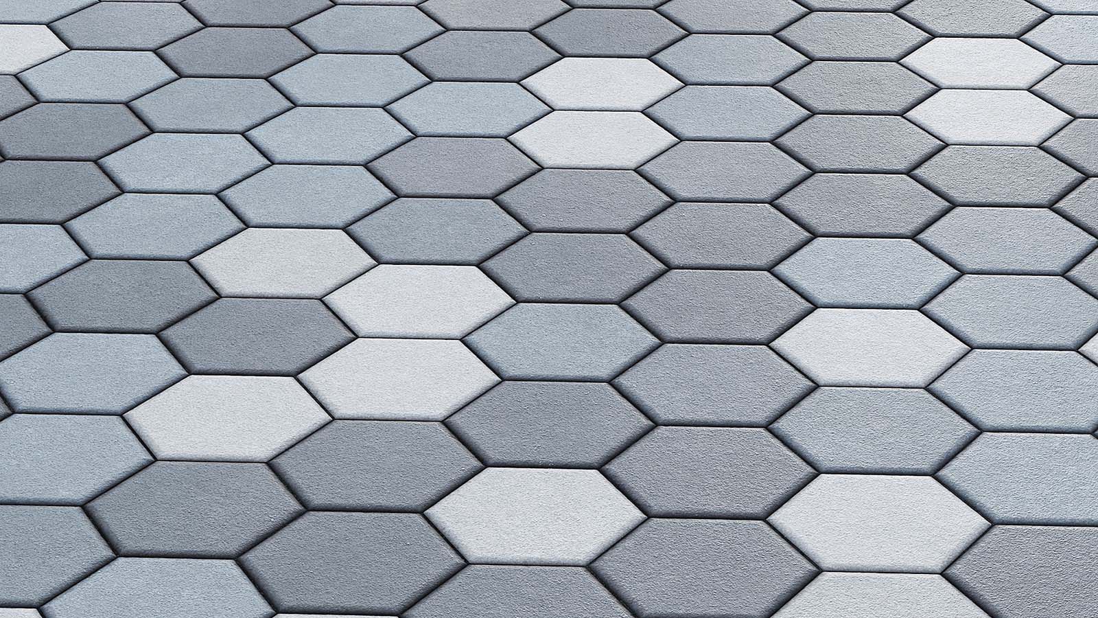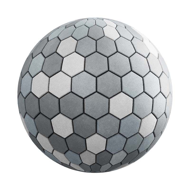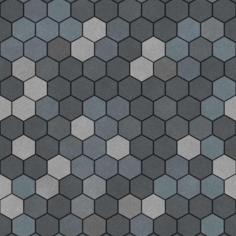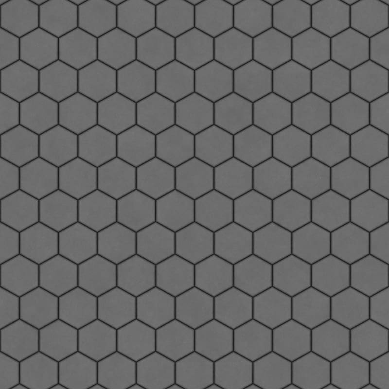 Seamless (tileable) Hexagonal Grey Pavement PBR Texture with seven maps: albedo/diffuse, reflection, glossiness, height/displacement, roughness, ambient occlusion and normal map.