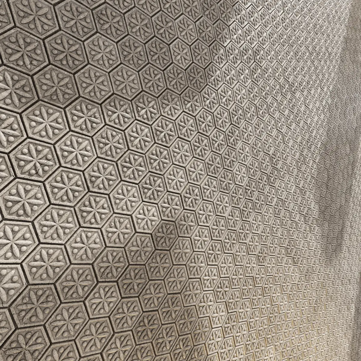Hexagonal Ornament Tiles maps: albedo/diffuse, reflection, glossiness, height/displacement, roughness, metalness, opacity, ambient occlusion and normal map. Resolution: 8192x8192px and 4096x4096px.