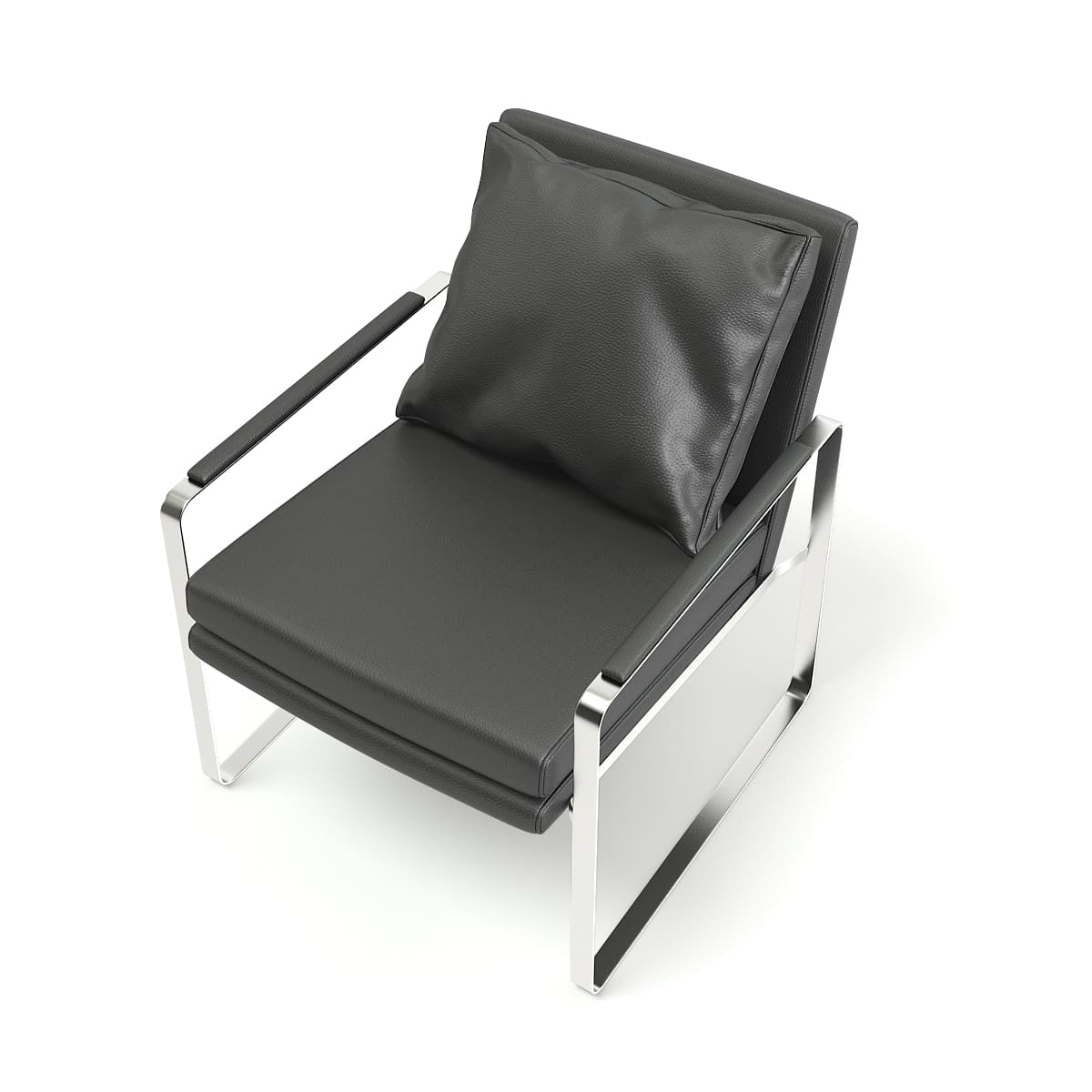 Metal and Leather Chair with Pillow 3d model. Compatible with 3ds max 2010 (V-Ray, Mental Ray, Corona) or higher, Cinema 4D R15 (V-Ray, Advanced Renderer), FBX and OBJ.
