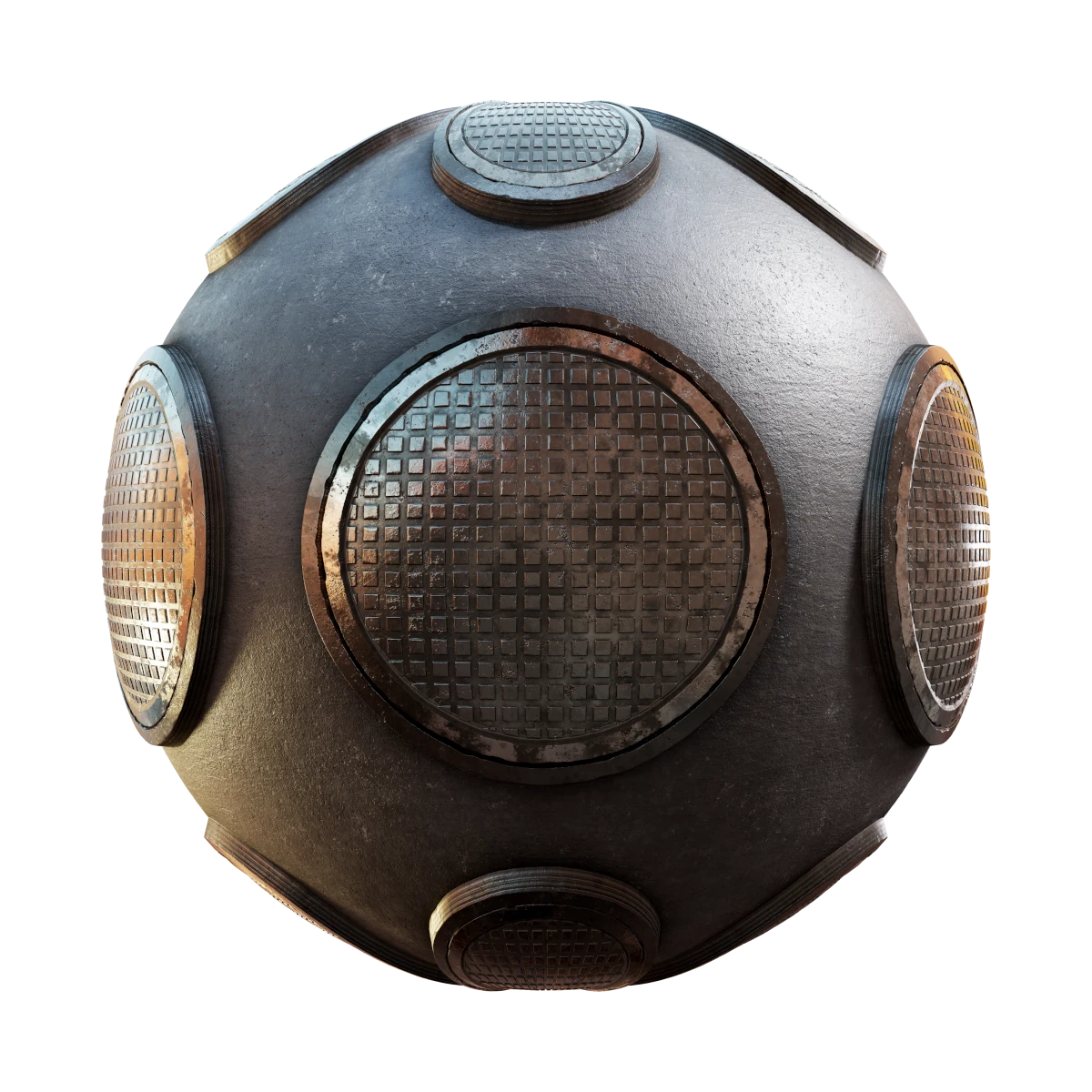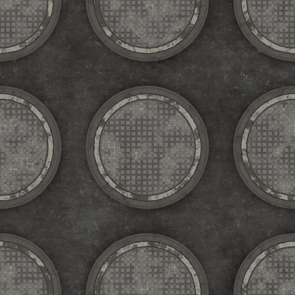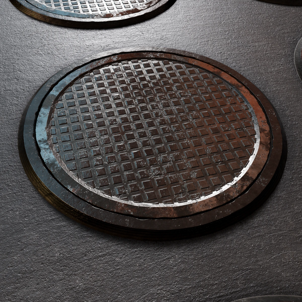 Metal Manhole PBR Texture with maps: basecolor/diffuse, glossiness, height (TIFF), IOR, metallic, normal (DirectX), normal (OpenGL), reflection, roughness and specular. Resolution: 8192x8192px and 4096x4096px.