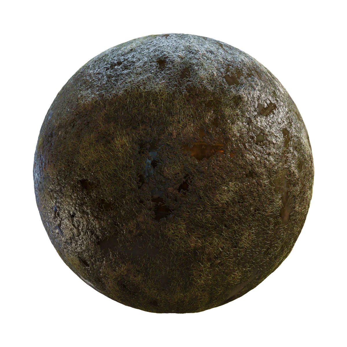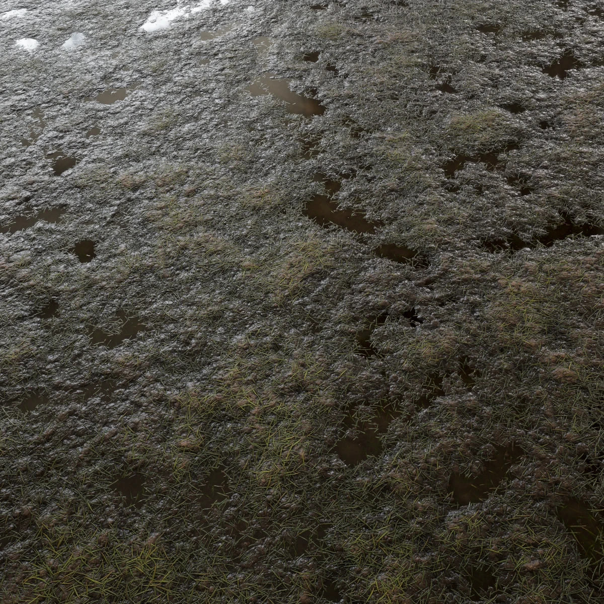 Mud With Grass And Water PBR Texture with maps: basecolor/diffuse, glossiness, height (TIFF), IOR, metallic, normal (DirectX), normal (OpenGL), reflection, roughness and specular. Resolution: 8192x8192px and 4096x4096px.