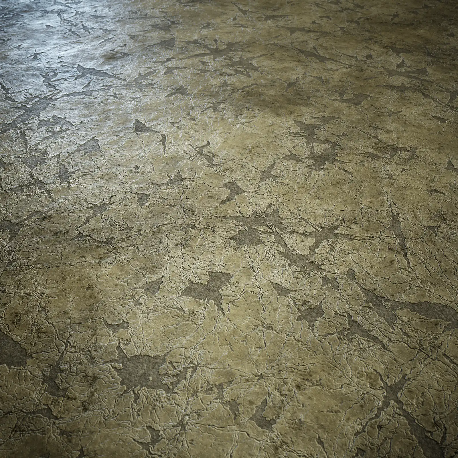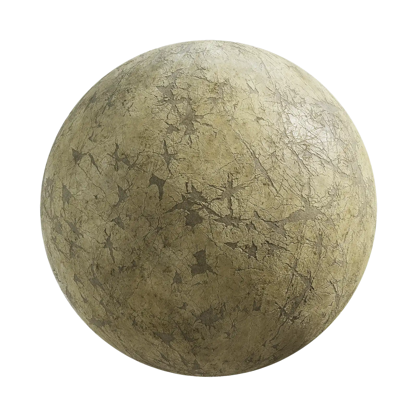 This plaster wall texture has a beige color with extensive cracking patterns across the surface. The material shows signs of age and weathering with peeling and damaged areas. Works well for architectural visualization and aged interior scenes.