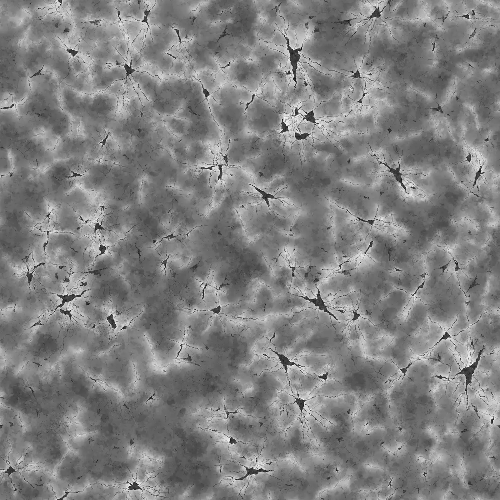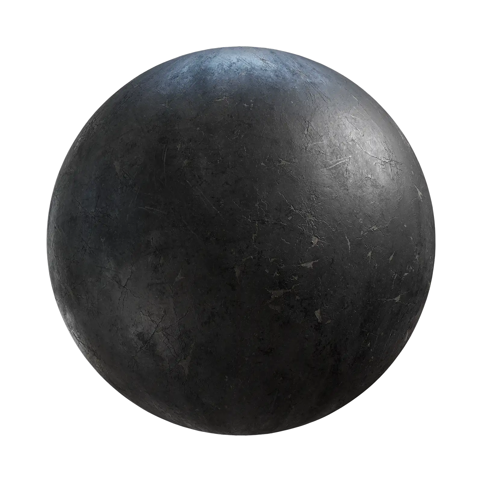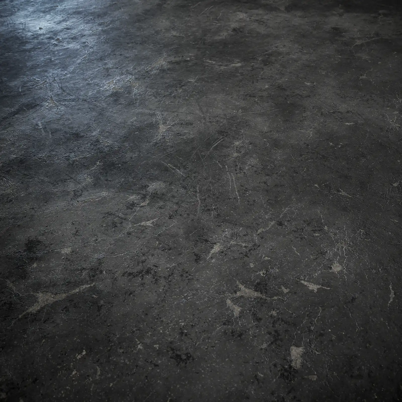 This plaster wall texture has a dark black surface with visible cracks and weathering. The material shows signs of age with rough, damaged areas across the surface. Works well for abandoned buildings or distressed interior scenes.