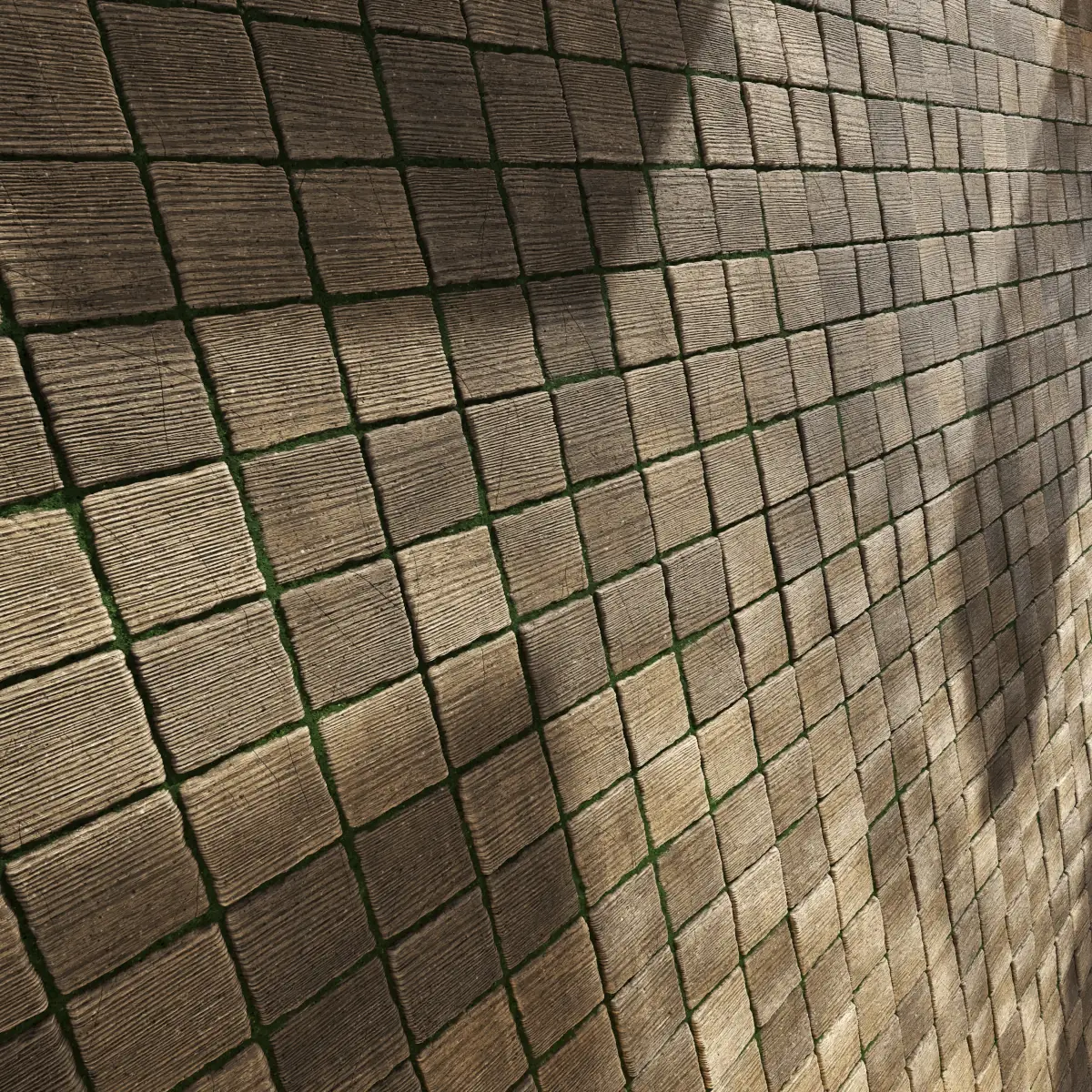 Old Square Wood Tiles With Moss PBR Texture with maps: albedo/diffuse, reflection, glossiness, height/displacement, roughness, metalness, opacity, ambient occlusion and normal map. Resolution: 8192x8192px and 4096x4096px.