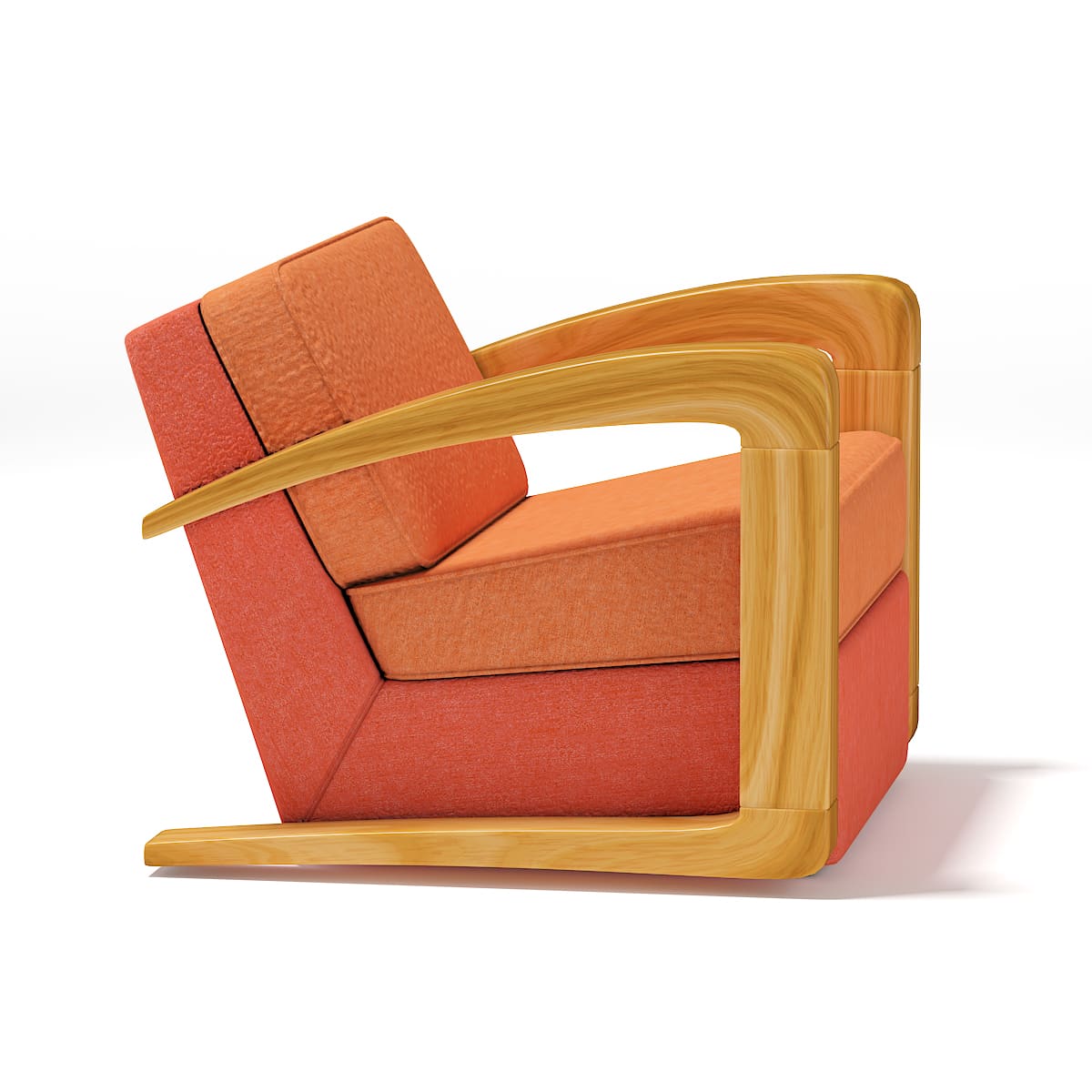 3d model fo orange fabric armchair with wooden sides. Compatible with 3ds max 2010 or higher and many others.