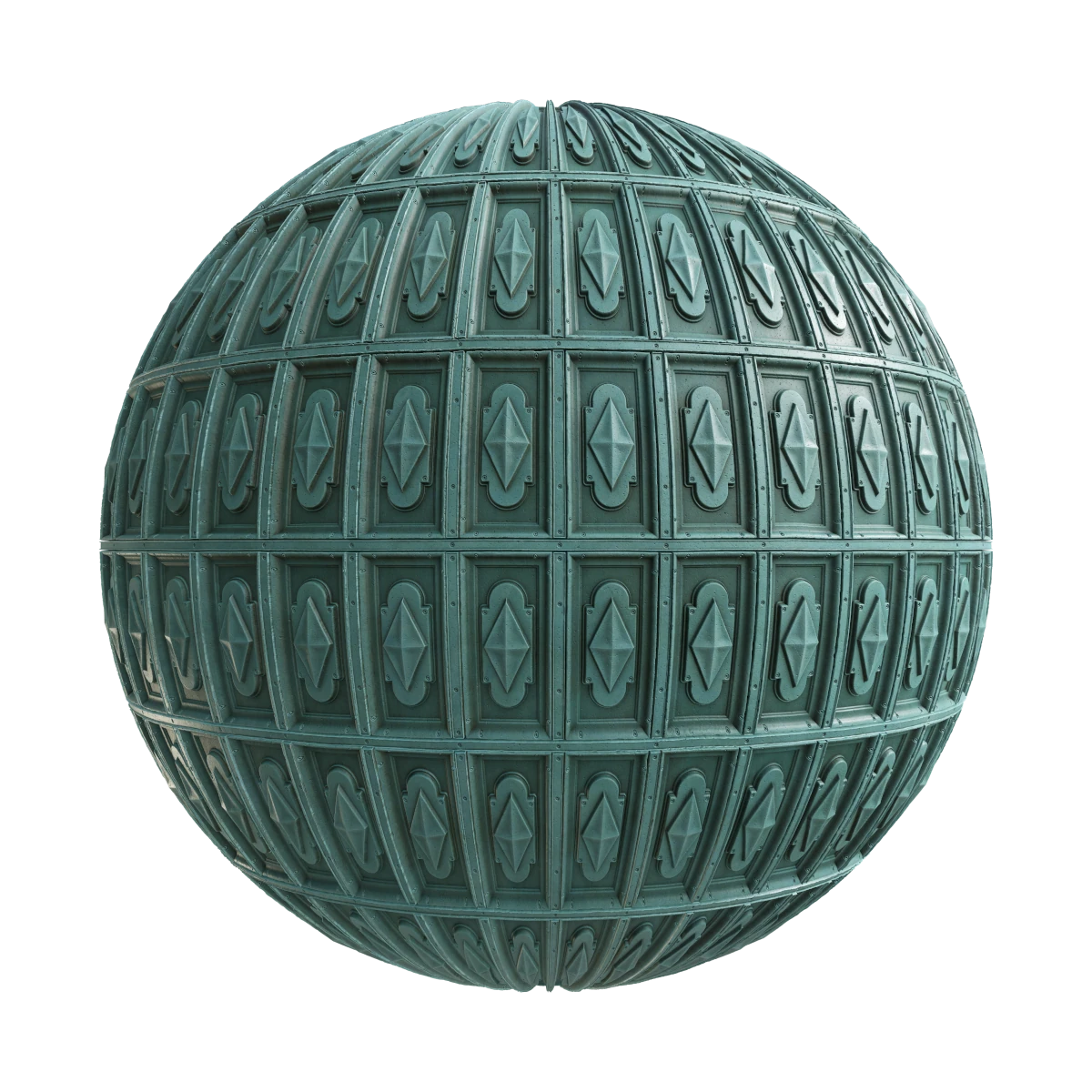 Patterned Patina Roof PBR Texture with maps: basecolor/diffuse, glossiness, height (TIFF), IOR, metallic, normal (DirectX), normal (OpenGL), reflection, roughness and specular. Resolution: 8192x8192px and 4096x4096px.