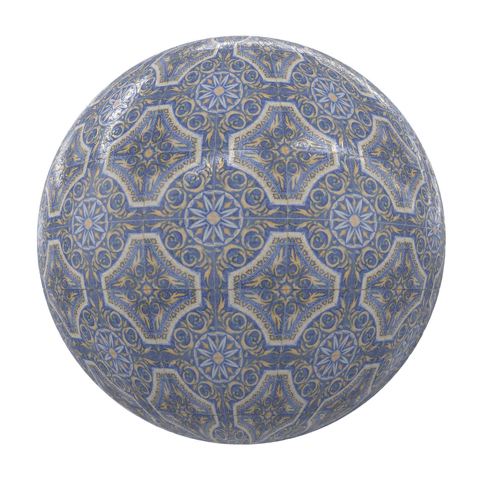 Seamless (tileable) Patterned Tiles PBR Texture with five maps: albedo/diffuse, reflection, glossiness, height/displacement and normal map. Resolution: 4096px x 4096px.