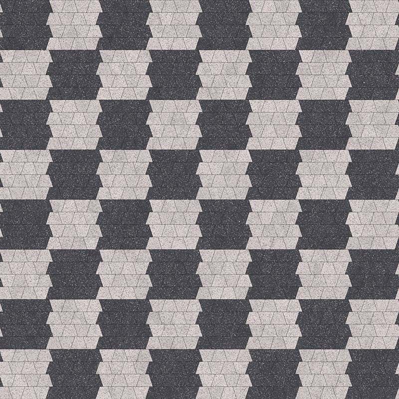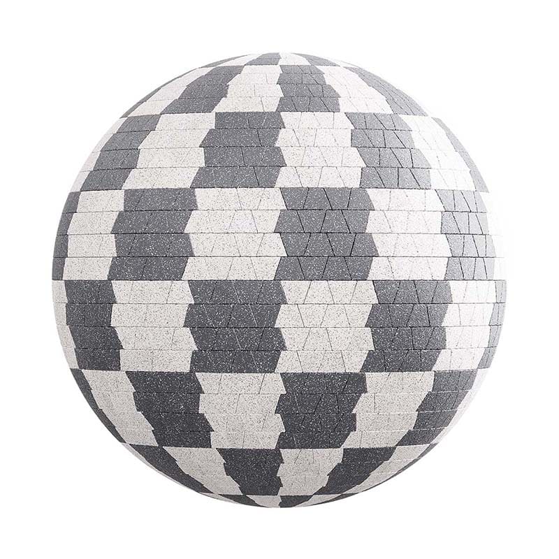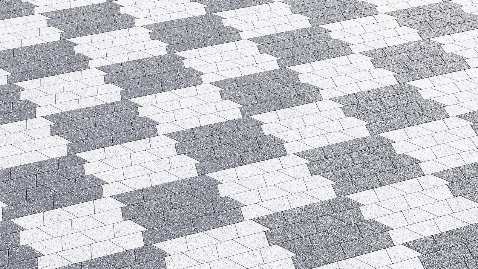 Seamless (tileable) Patterned Trapezoidal Pavement PBR Texture with seven maps: albedo/diffuse, reflection, glossiness, height/displacement, roughness, ambient occlusion and normal map.