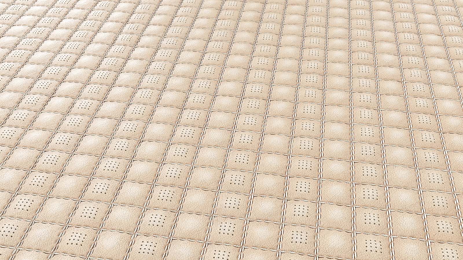 Seamless (tileable) Quilted Beige Leather PBR Texture with seven maps: albedo/diffuse, reflection, glossiness, height/displacement, roughness, ambient occlusion and normal map.