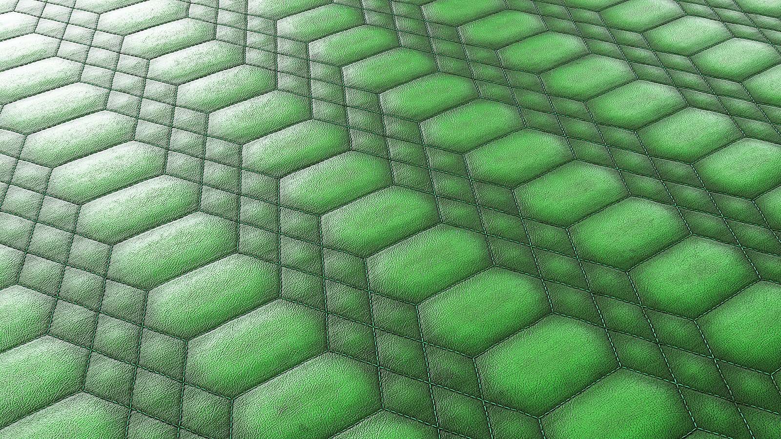 Seamless (tileable) Quilted Green Fabric PBR Texture with seven maps: albedo/diffuse, reflection, glossiness, height/displacement, roughness, ambient occlusion and normal map.