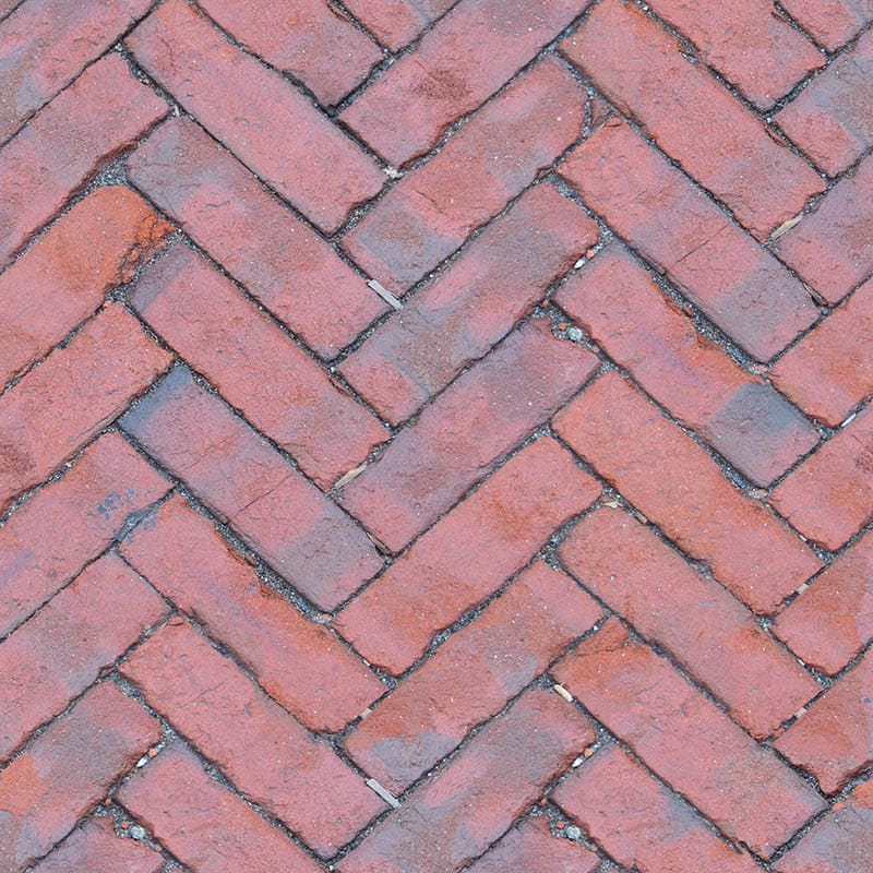 Seamless (tileable) Red Brick Pavement PBR Texture with five maps: albedo/diffuse, reflection, glossiness, height/displacement and normal map. Resolution: 4096px x 4096px.