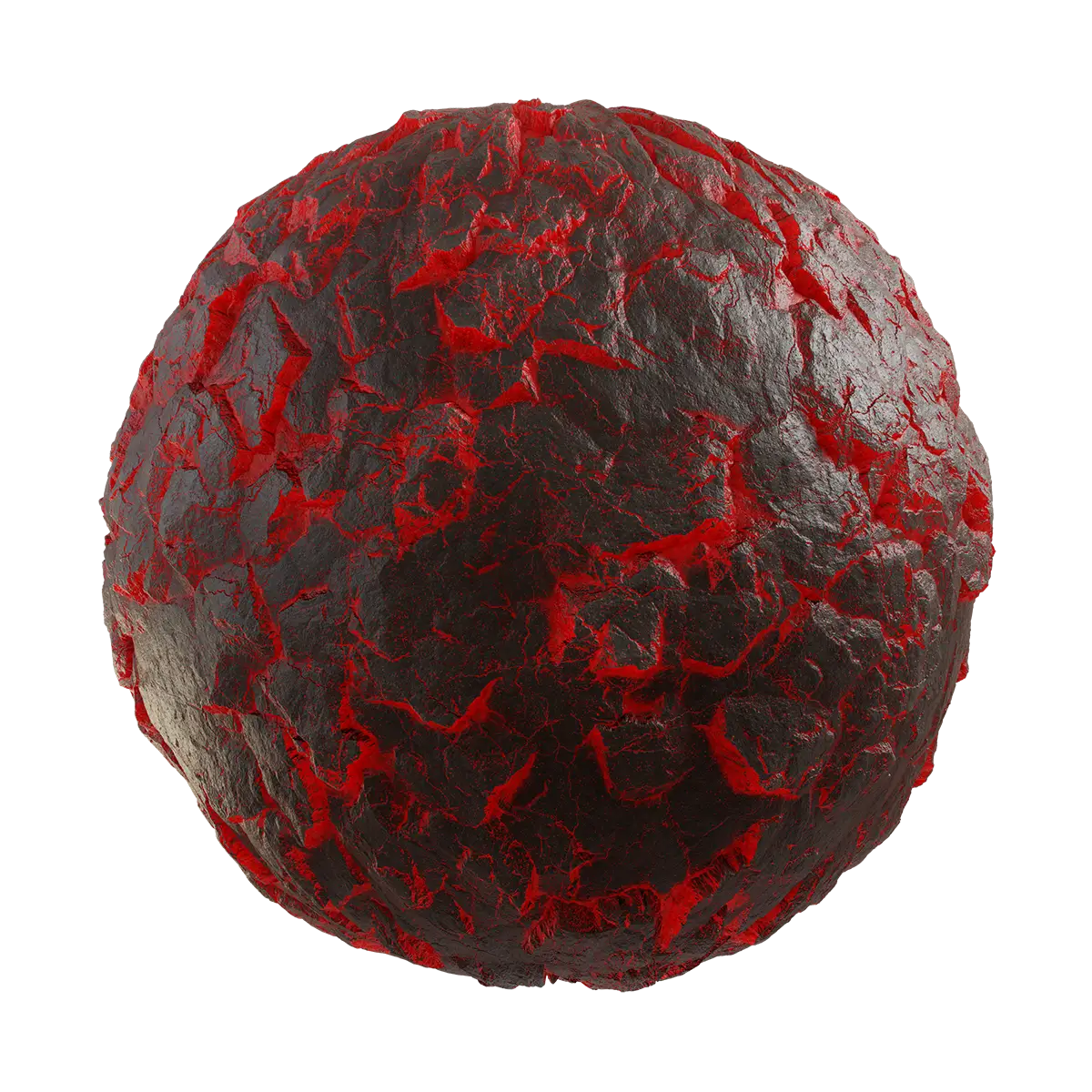 Red Glowing Rock PBR Texture with maps: basecolor/diffuse, glossiness, height (TIFF), IOR, metallic, normal (DirectX), normal (OpenGL), reflection, roughness and specular. Resolution: 8192x8192px and 4096x4096px.