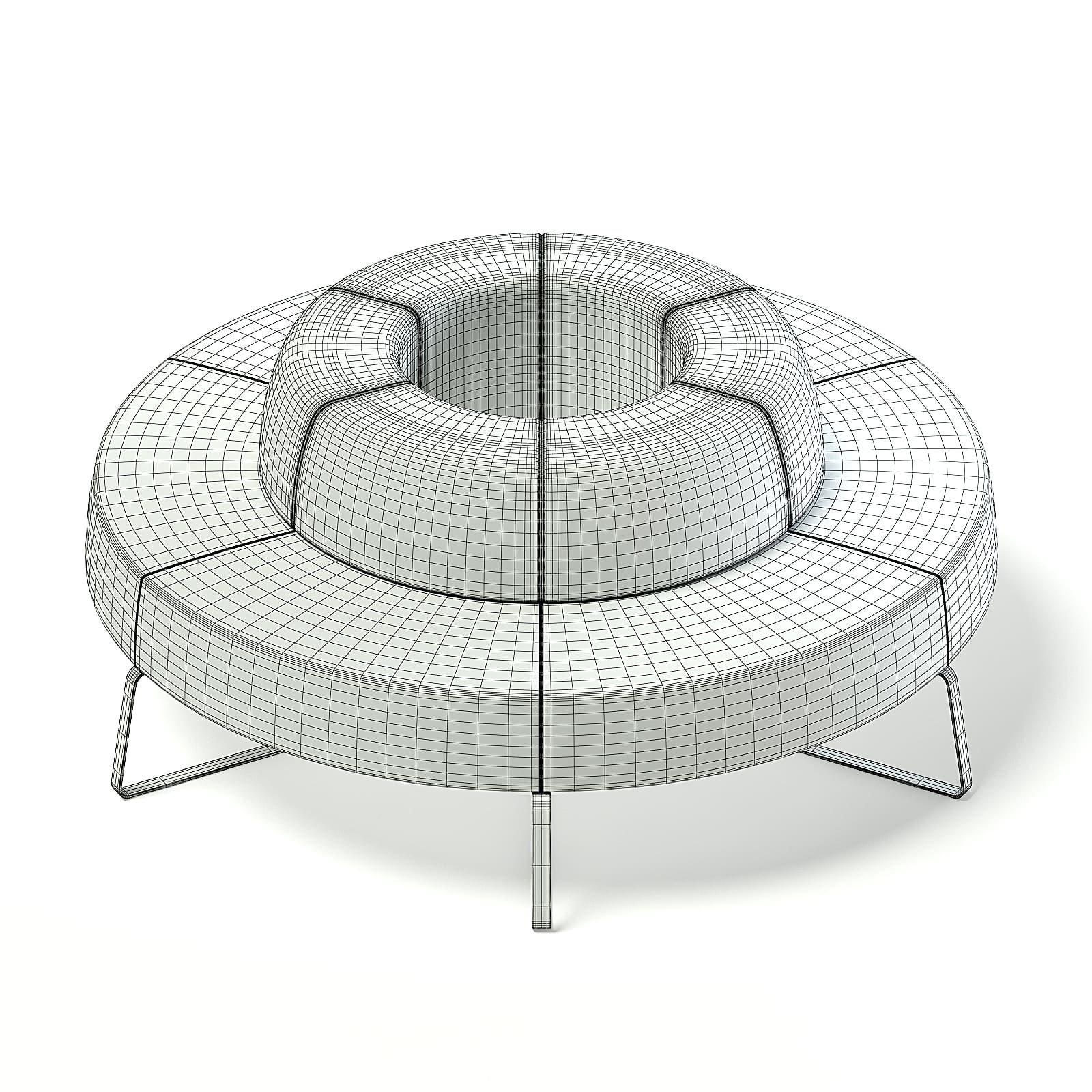 Round red leather waiting sofa 3d model with chromed metal legs. Compatible with 3ds max 2010 (V-Ray, Mental Ray, Corona) or higher, Cinema 4D R15 (V-Ray, Advanced Renderer), FBX, OBJ and Unreal Engine.