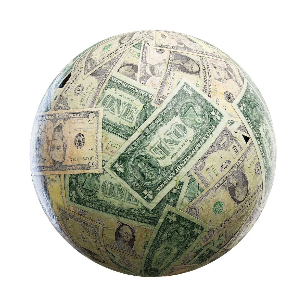 Seamless (tileable) Scattered Dollar Bills PBR Texture with eight maps: albedo/diffuse, reflection, glossiness, height/displacement, roughness, metalness, ambient occlusion and normal map. Resolution: 8192x8192px and 4096x4096px.