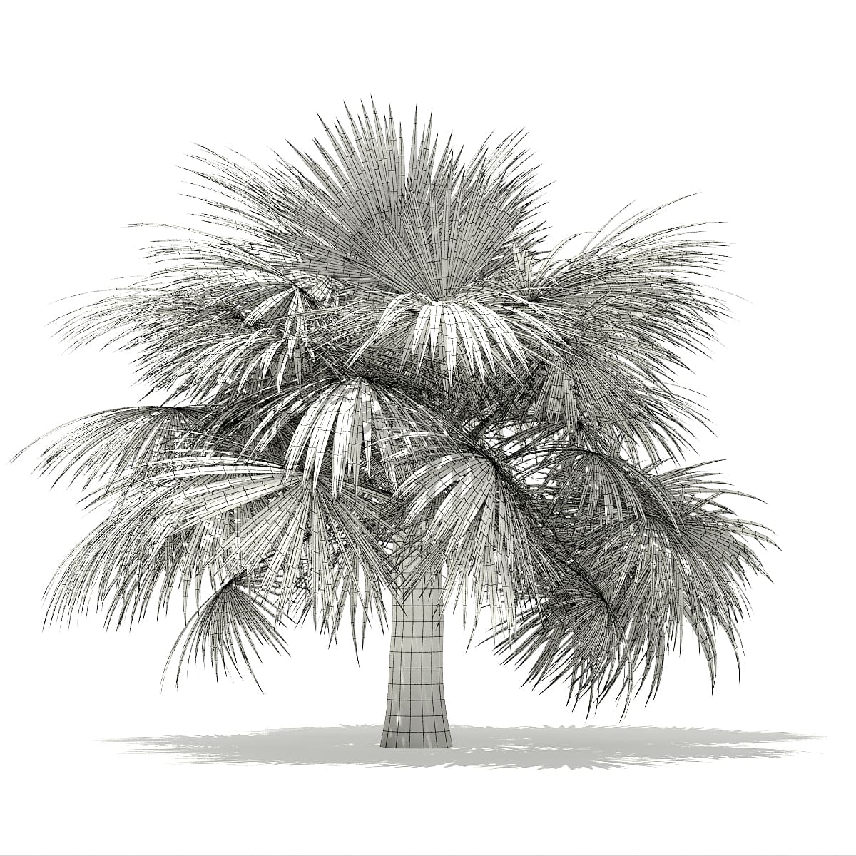 Silver fan palm tree 3d model. Height: 3.9m. Compatible with 3ds max 2010 (V-Ray, Mental Ray, Corona) or higher, Cinema 4D R15 (V-Ray, Advanced Renderer), Unreal Engine, FBX, OBJ