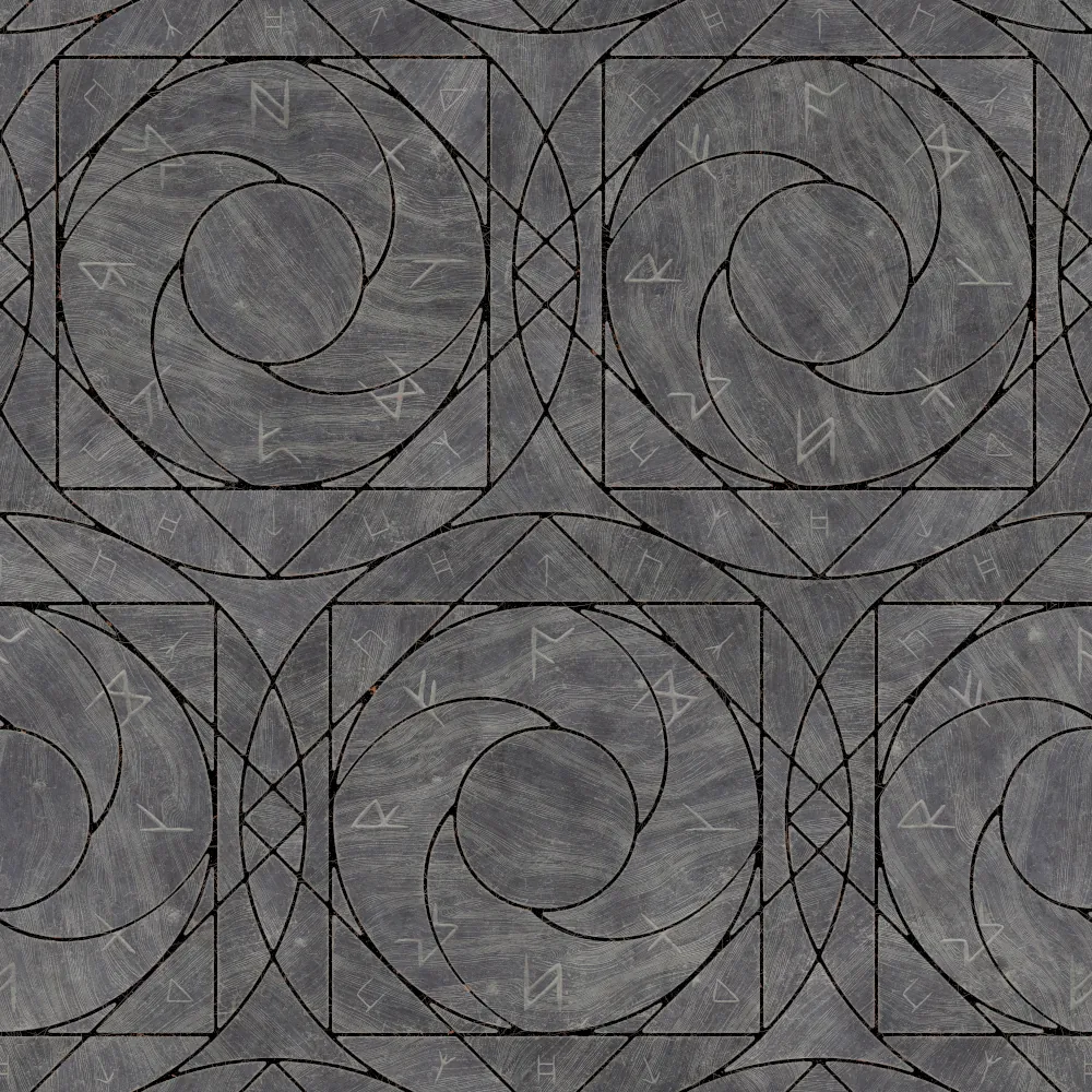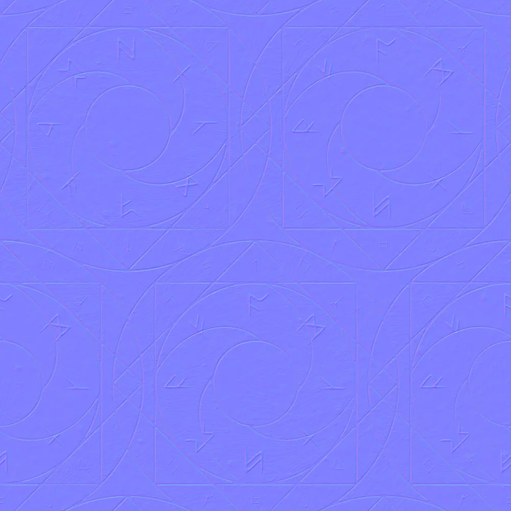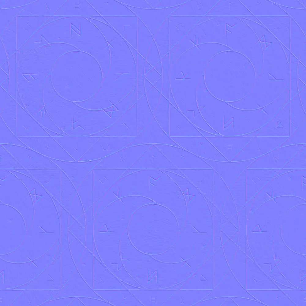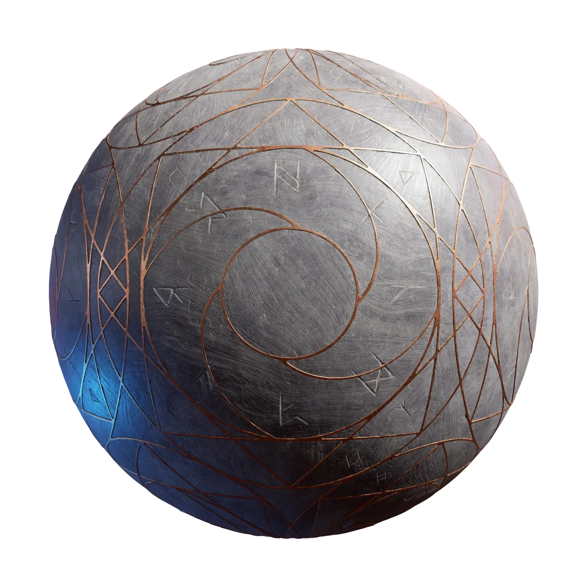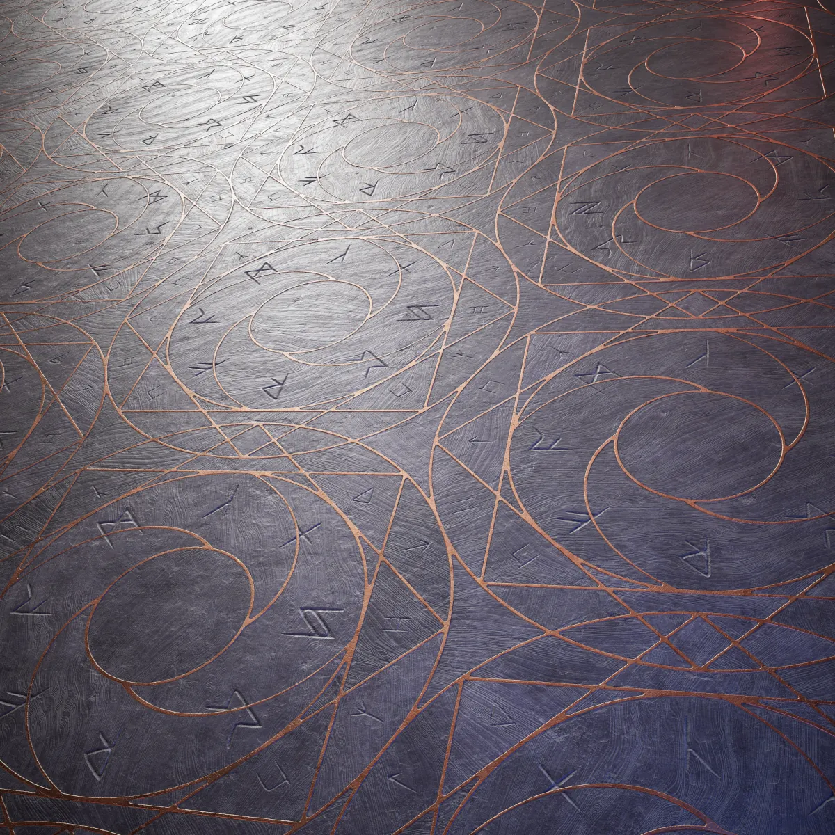 Stone and Copper Runic Floor PBR Texture with maps: basecolor/diffuse, glossiness, height (TIFF), IOR, metallic, normal (DirectX), normal (OpenGL), reflection, roughness and specular. Resolution: 8192x8192px and 4096x4096px.