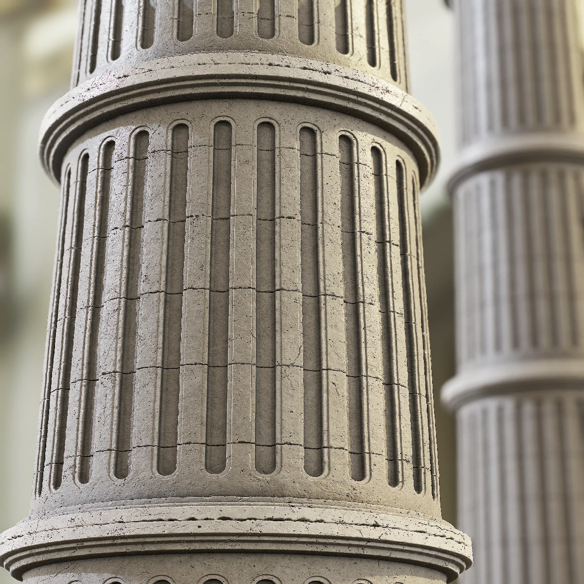 Stone Column PBR Texture with maps: basecolor/diffuse, glossiness, height (TIFF), IOR, metallic, normal (DirectX), normal (OpenGL), reflection, roughness and specular. Resolution: 8192x8192px and 4096x4096px.