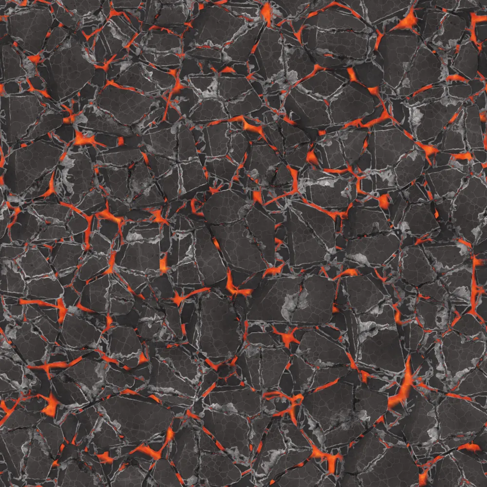 Stylized Cracked Lava Rocks PBR Texture with maps: basecolor/diffuse, glossiness, height (TIFF), IOR, metallic, normal (DirectX), normal (OpenGL), reflection, roughness and specular. Resolution: 8192x8192px and 4096x4096px.