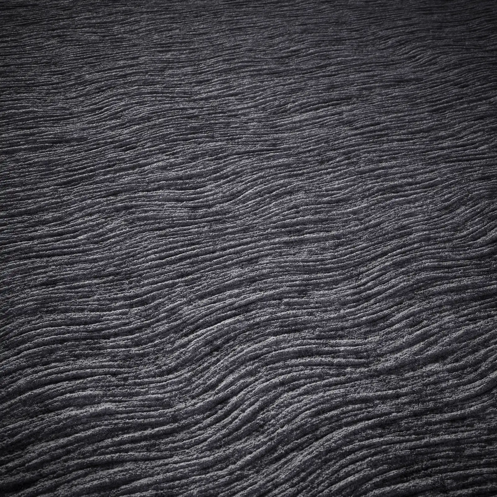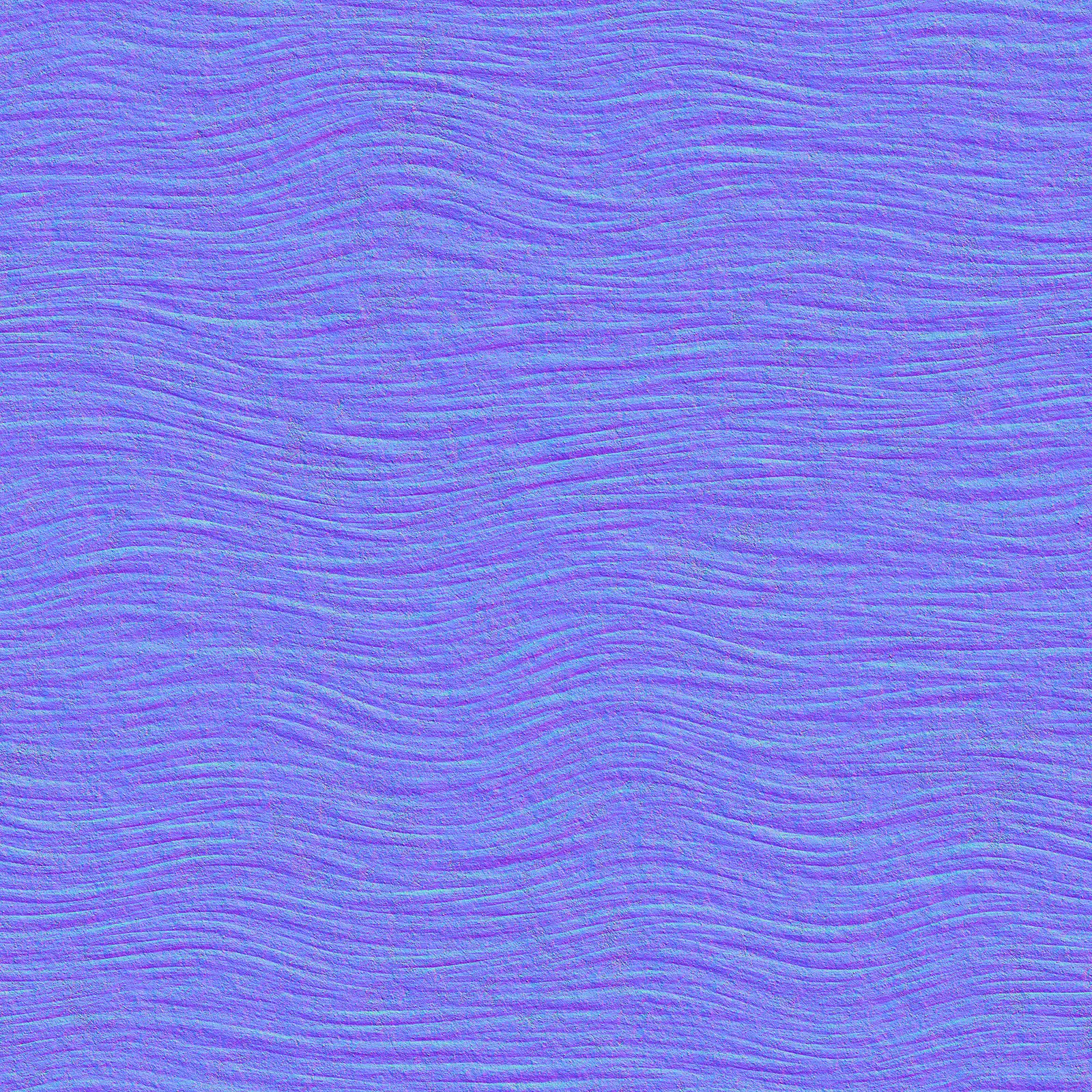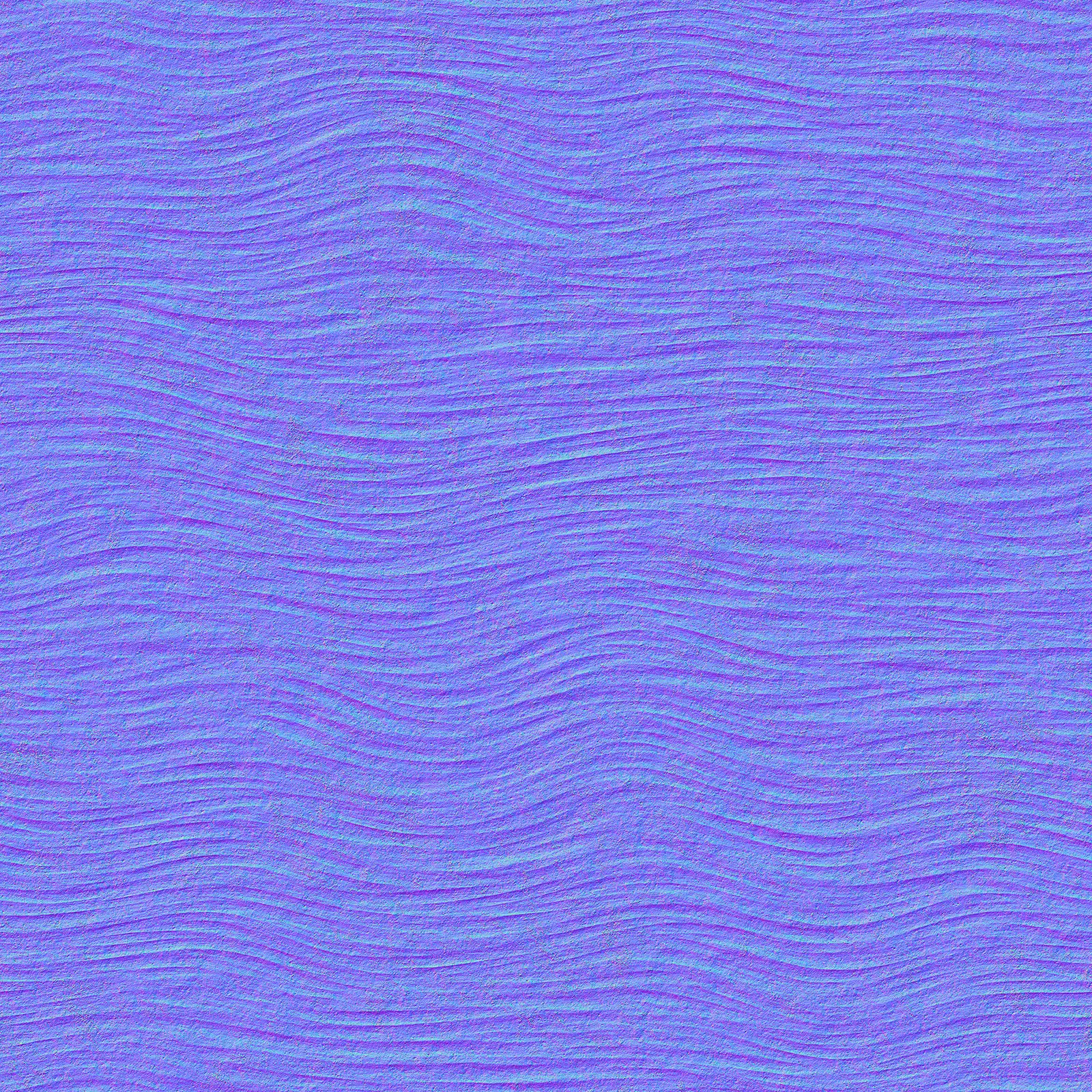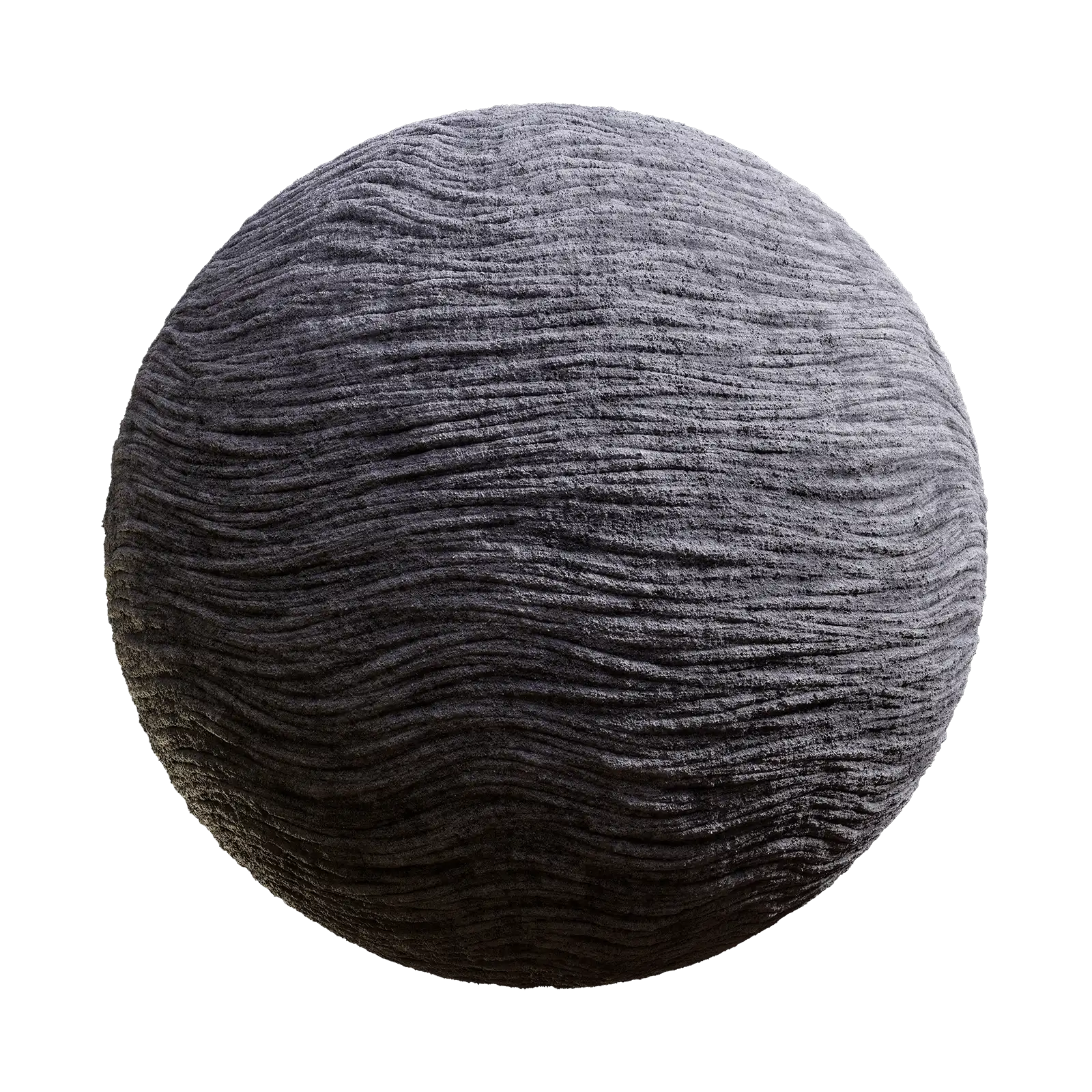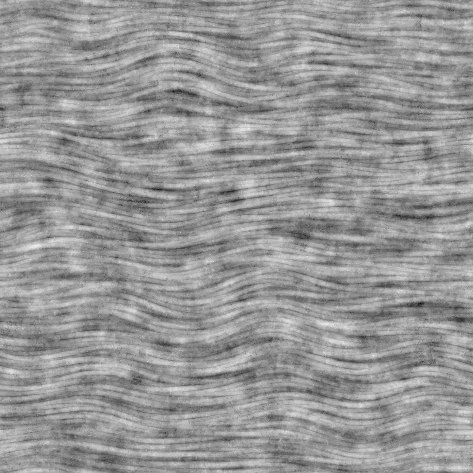 Grey concrete texture with distinctive wavy horizontal ridges and rough surface patterns. Features natural concrete coloration with detailed bump mapping and surface irregularities suitable for architectural visualization, wall surfaces, and modern interior design applications.